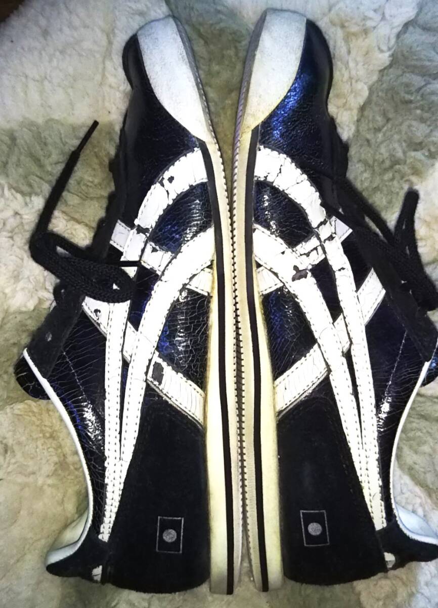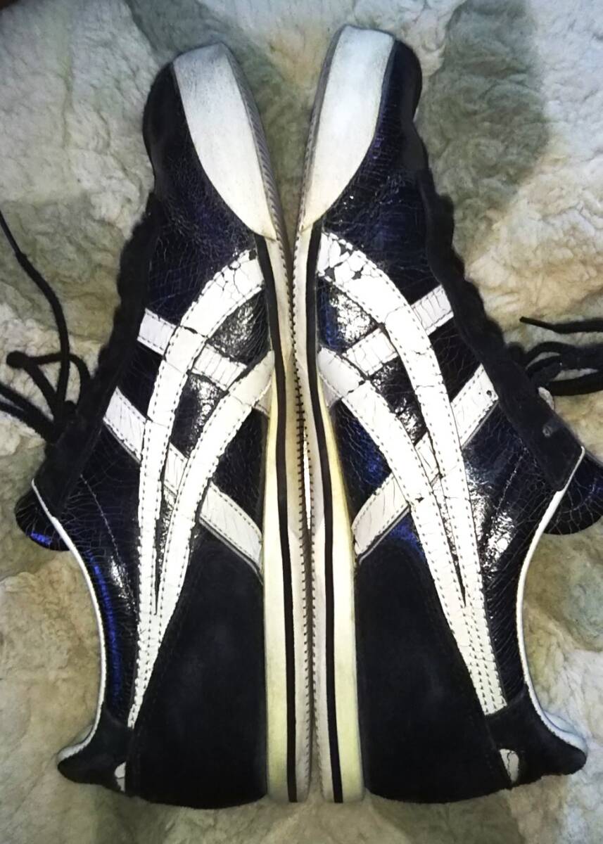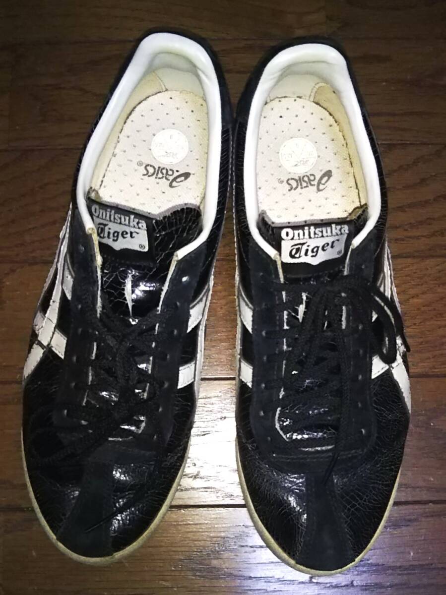 即決・送料込★希少★Onitsuka Tiger オニツカタイガー★難あり・クラックレザー本革 スニーカー THL508★黒x白 US9(27cm) ヴィンテージ