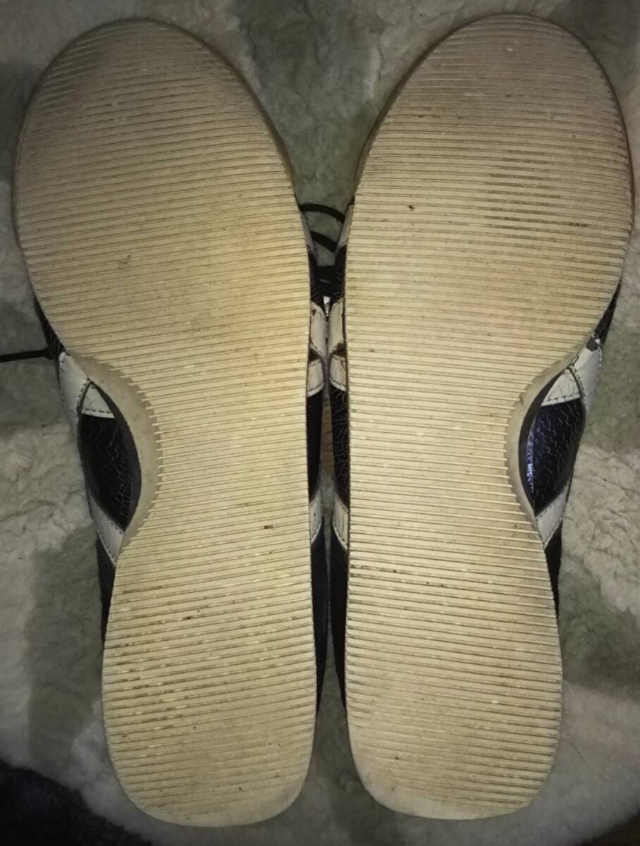 ・ソールサイド・インソールに薄汚れ、サイドの白ラインに剥げ多数、踵の減りありと使用感あるも、減りは少なく、ライン以外に目立つ汚れ・傷みない良い状態です。ラインの状態は、爪等固いもので強く擦ると剥げが広がる状況です。(状態説明は外観のみの個人的感想で、品質・機能・動作等を保証するものではありません)