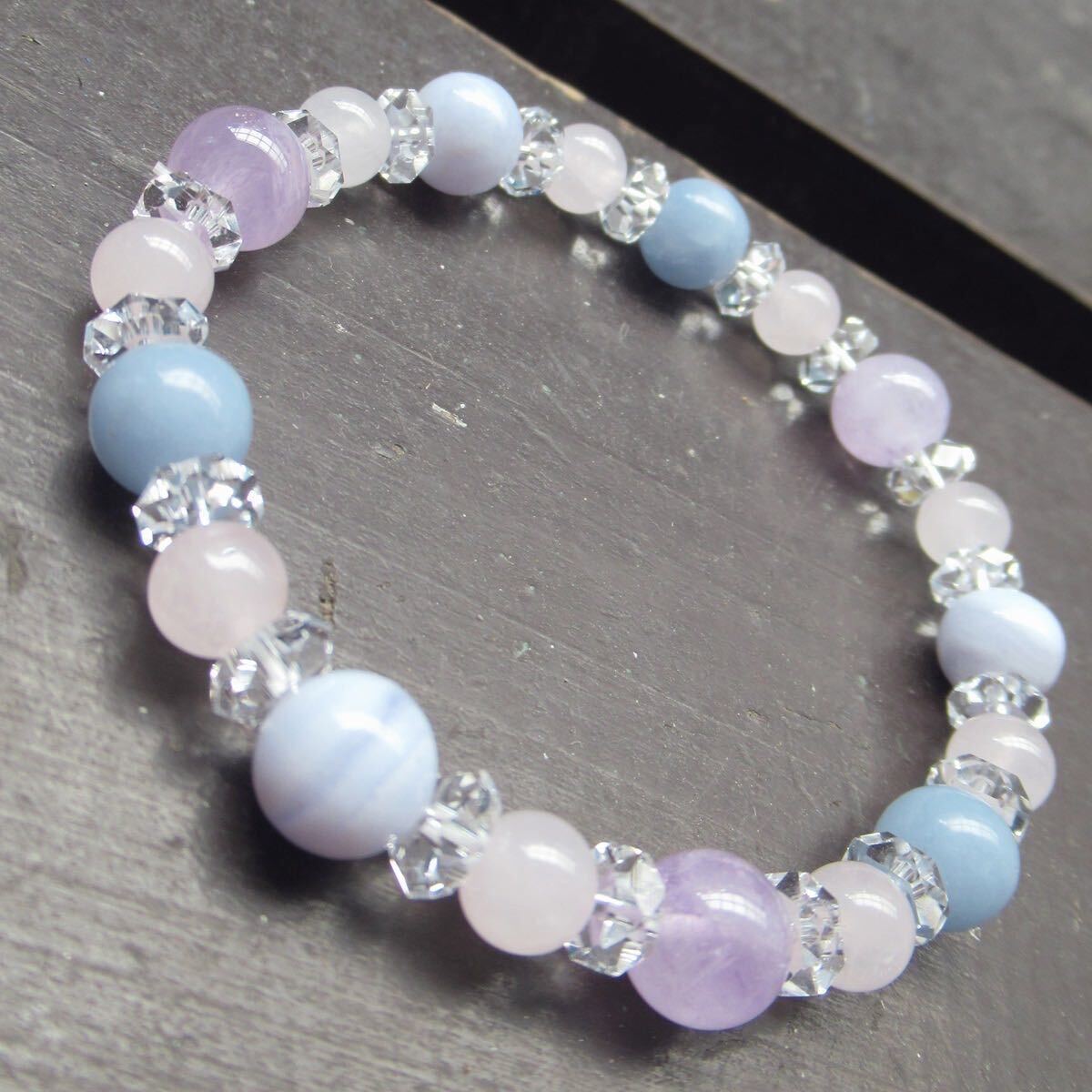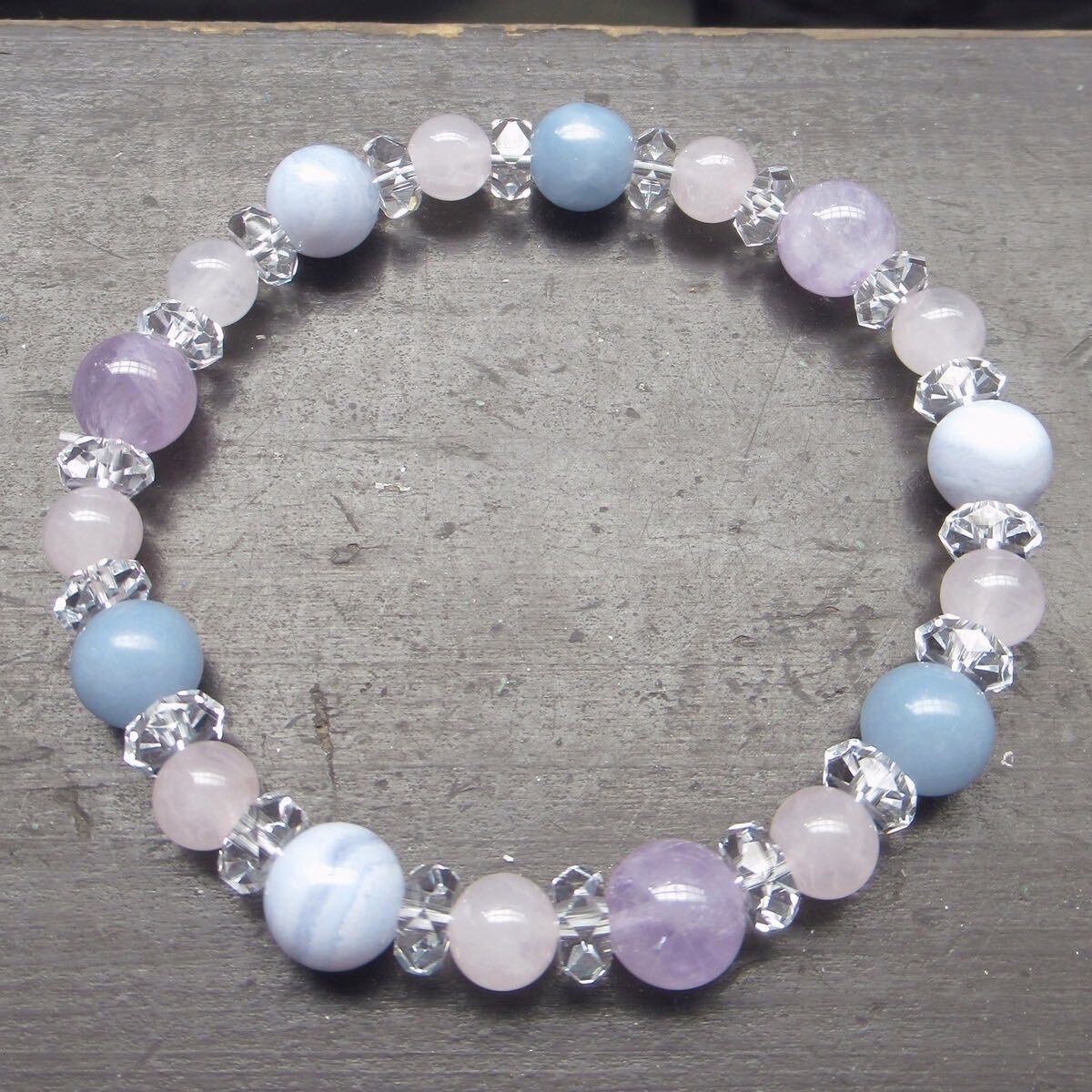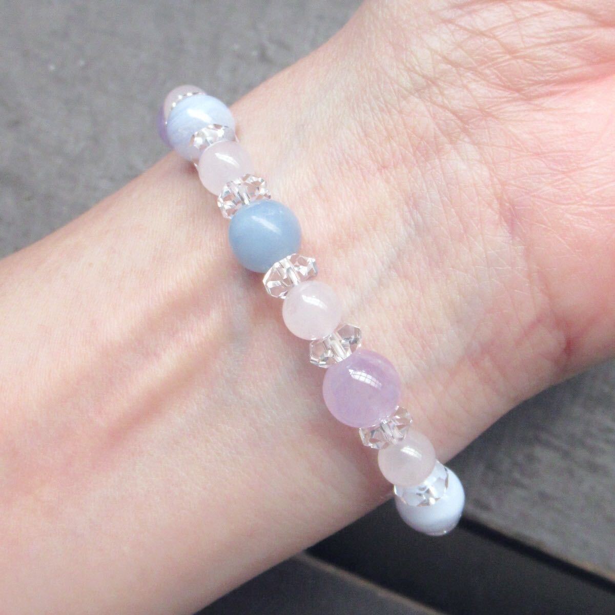 ブルーレースxエンジェライトxラベンダーアメジストxローズクォーツブレスレット 天然石 パワーストーン