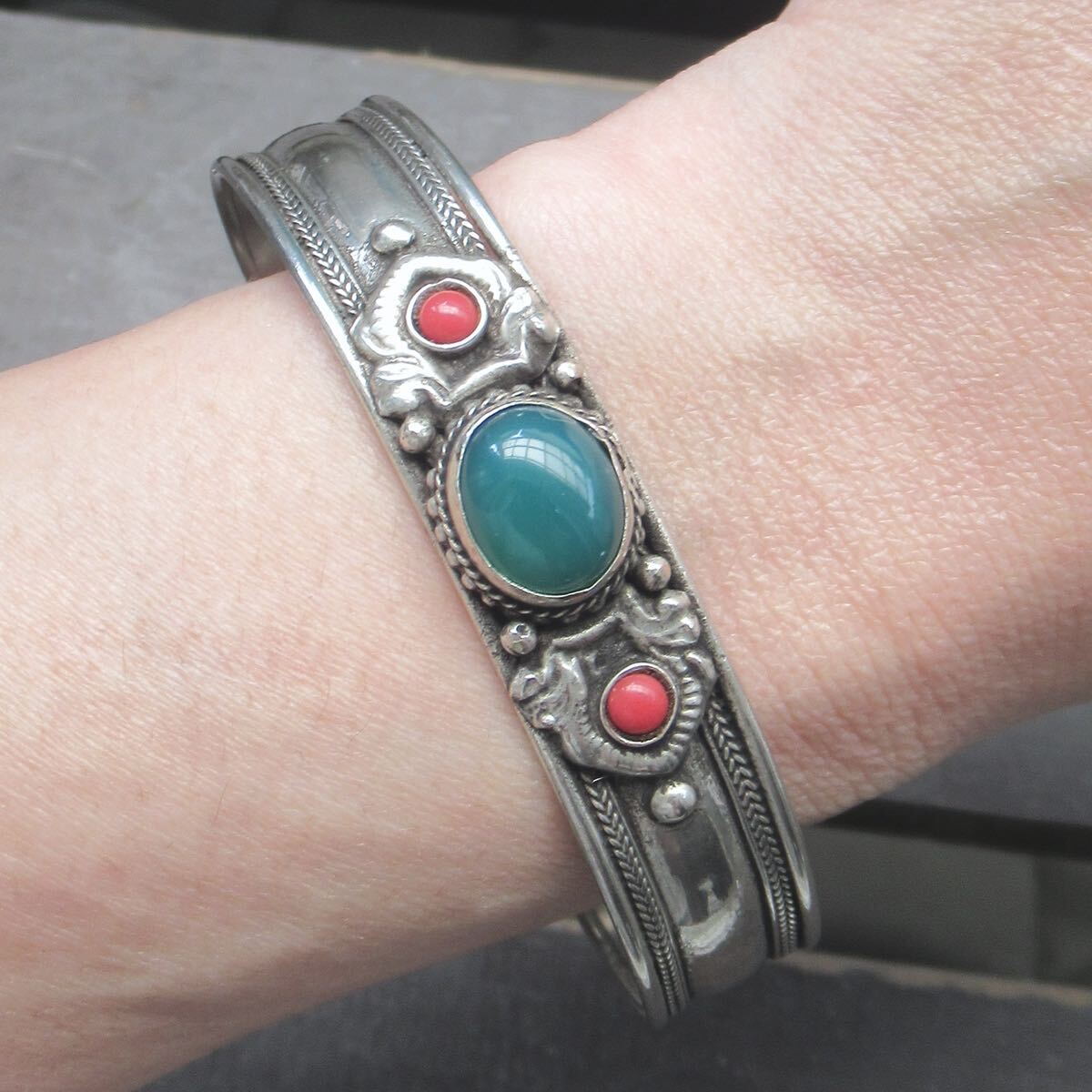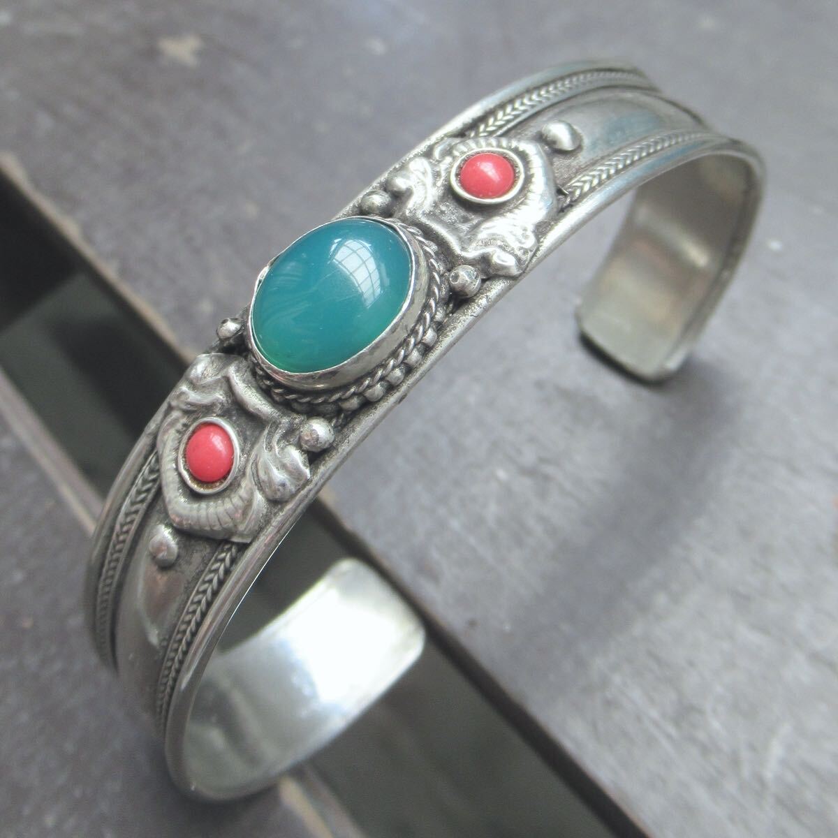 アベンチュリン*ホワイトメタルバングル 天然石