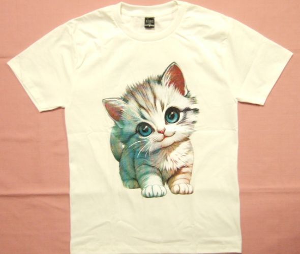 商品名 | 横浜最新 愛くるしい青い目の猫ちゃん♪魅惑のTシャツ M, L 白 |