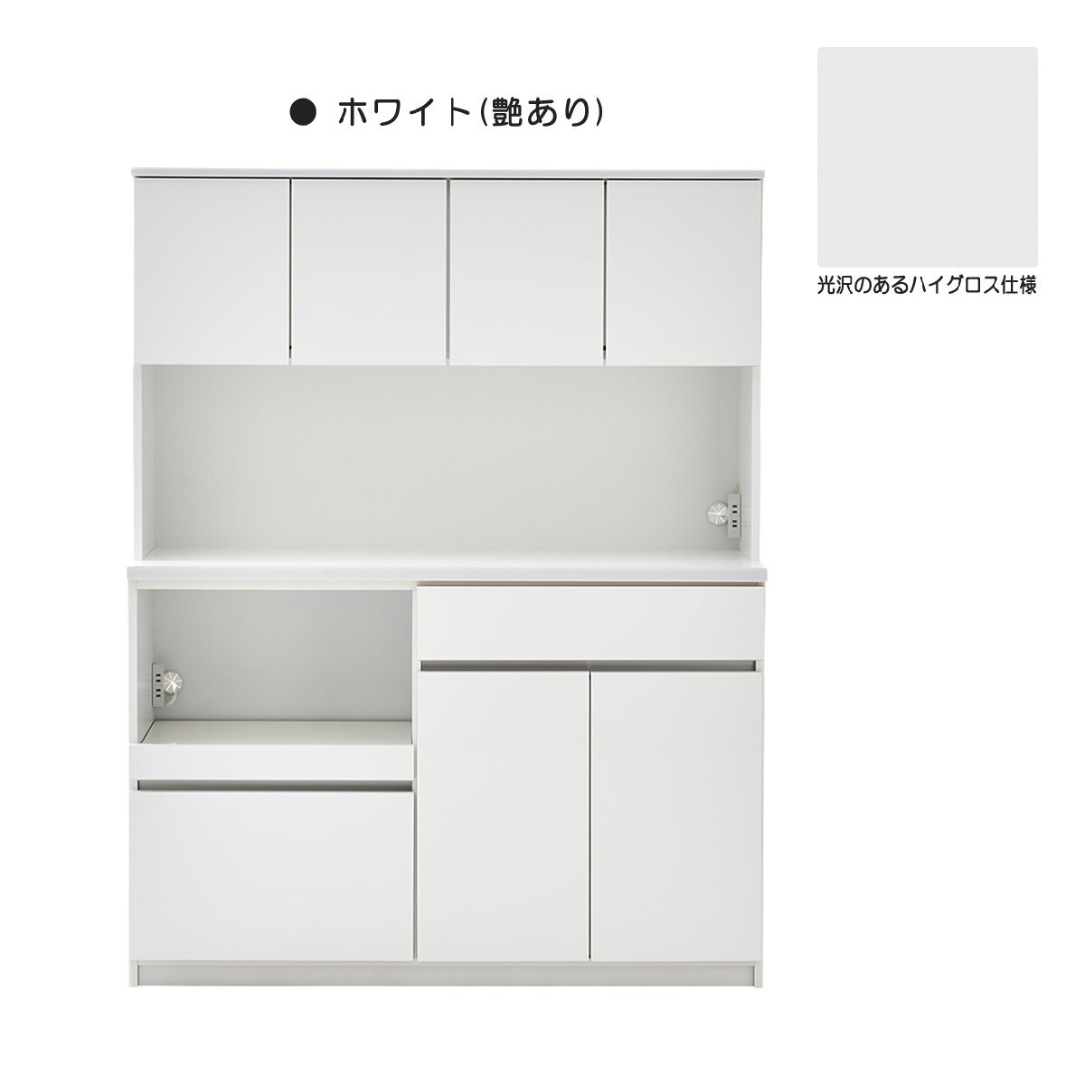 食器棚 レンジ台 キッチンボード 幅140cm モイス付き レンジラック カップボード キッチン ホワイト(艶あり)