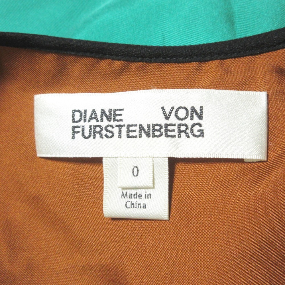 美品 DIANE von FURSTENBERG ダイアンフォンファステンバーグ シルク100% 配色 ノースリーブ ワンピース ドレス 0 グリーン×ブラウン