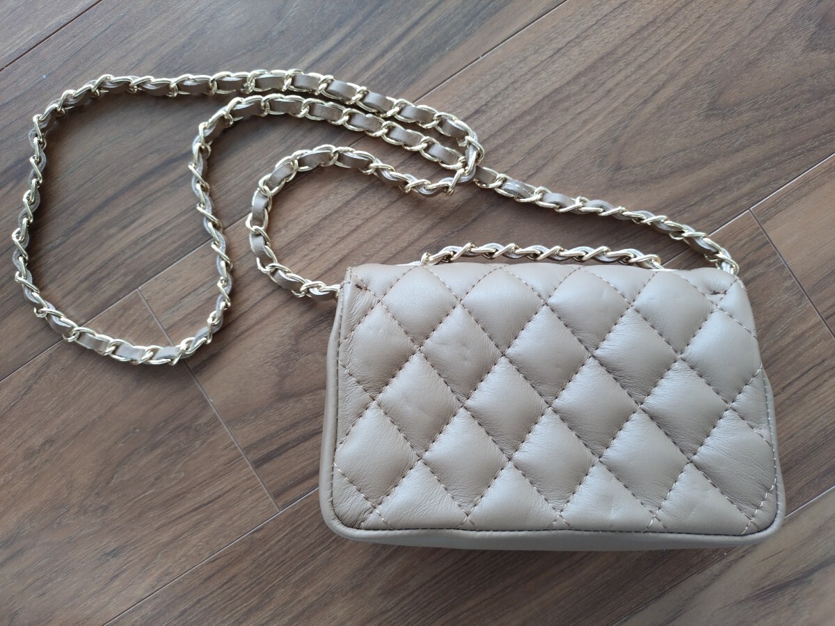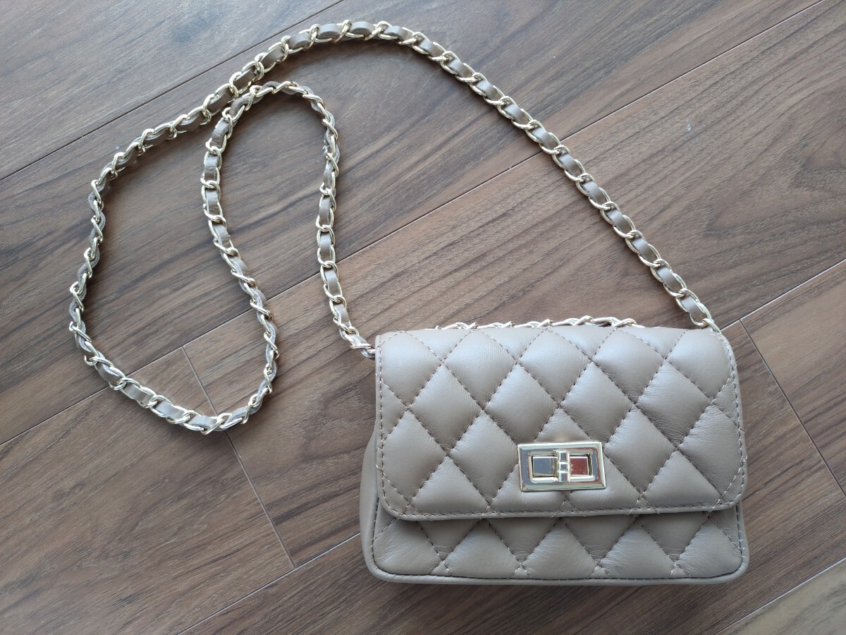 2年前に購入しました。未使用ですが、タグは切ってしまいました。イタリアのフィレンツェのブランドで、本革です。チェーンを短く肩掛けにすることも出来ます。