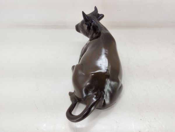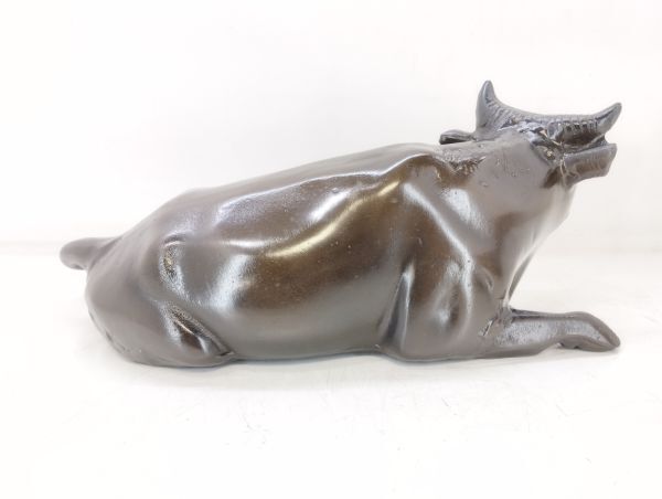 サ/ 美術鋳物 座牛 置物 うし 干支 丑 オブジェ 牛の置物 インテリア 箱付き 約2.5㎏ /HY-0670
