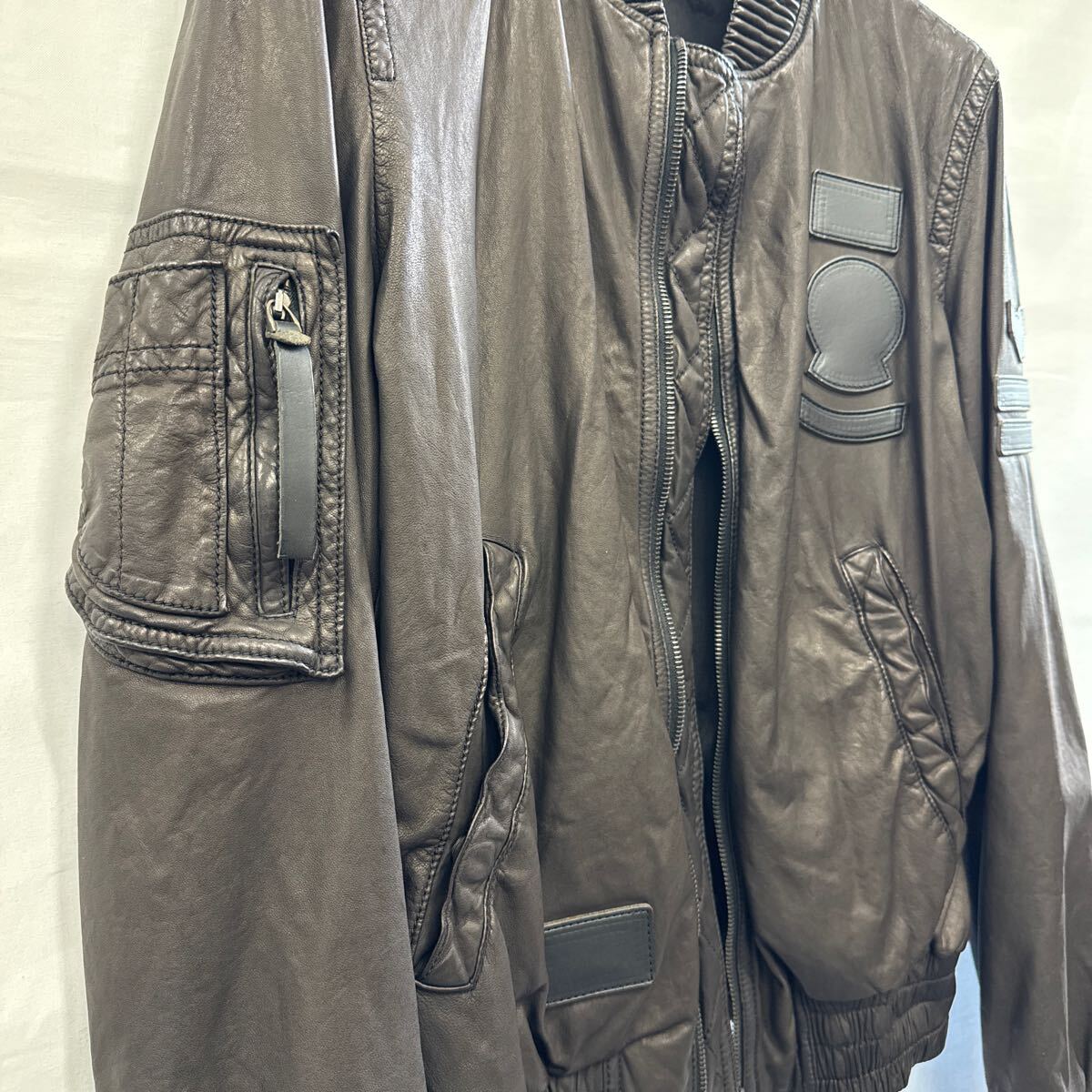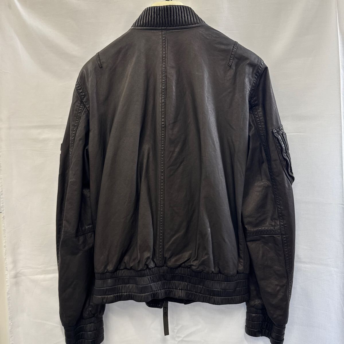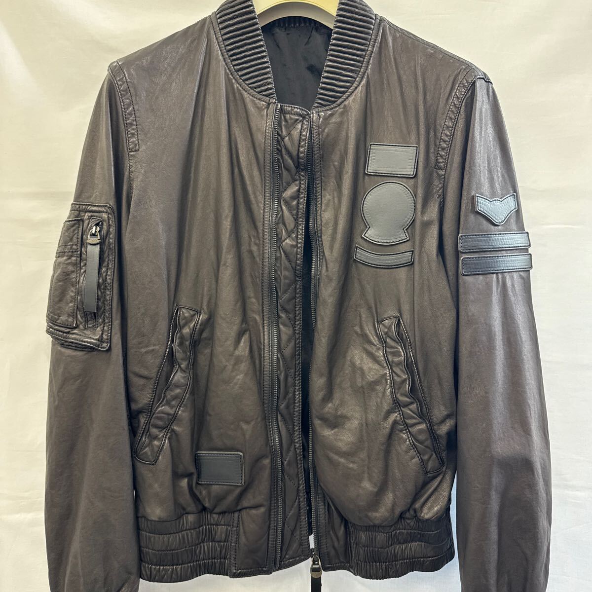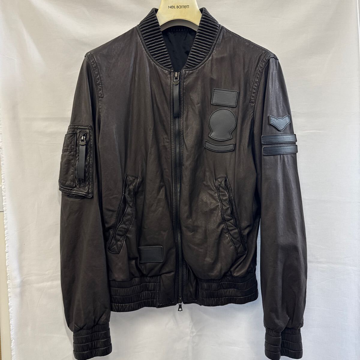 「ニール バレット」のバッファローレザーではない〜名作:極薄かつ超軽なラムナッパーレザーのMAー1型ブルゾンです。袖口や襟まで全てがレザー仕上げと加工になっています。