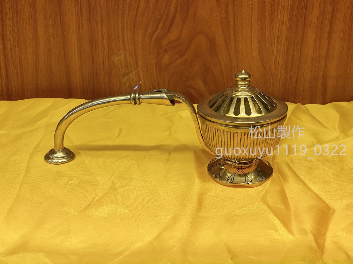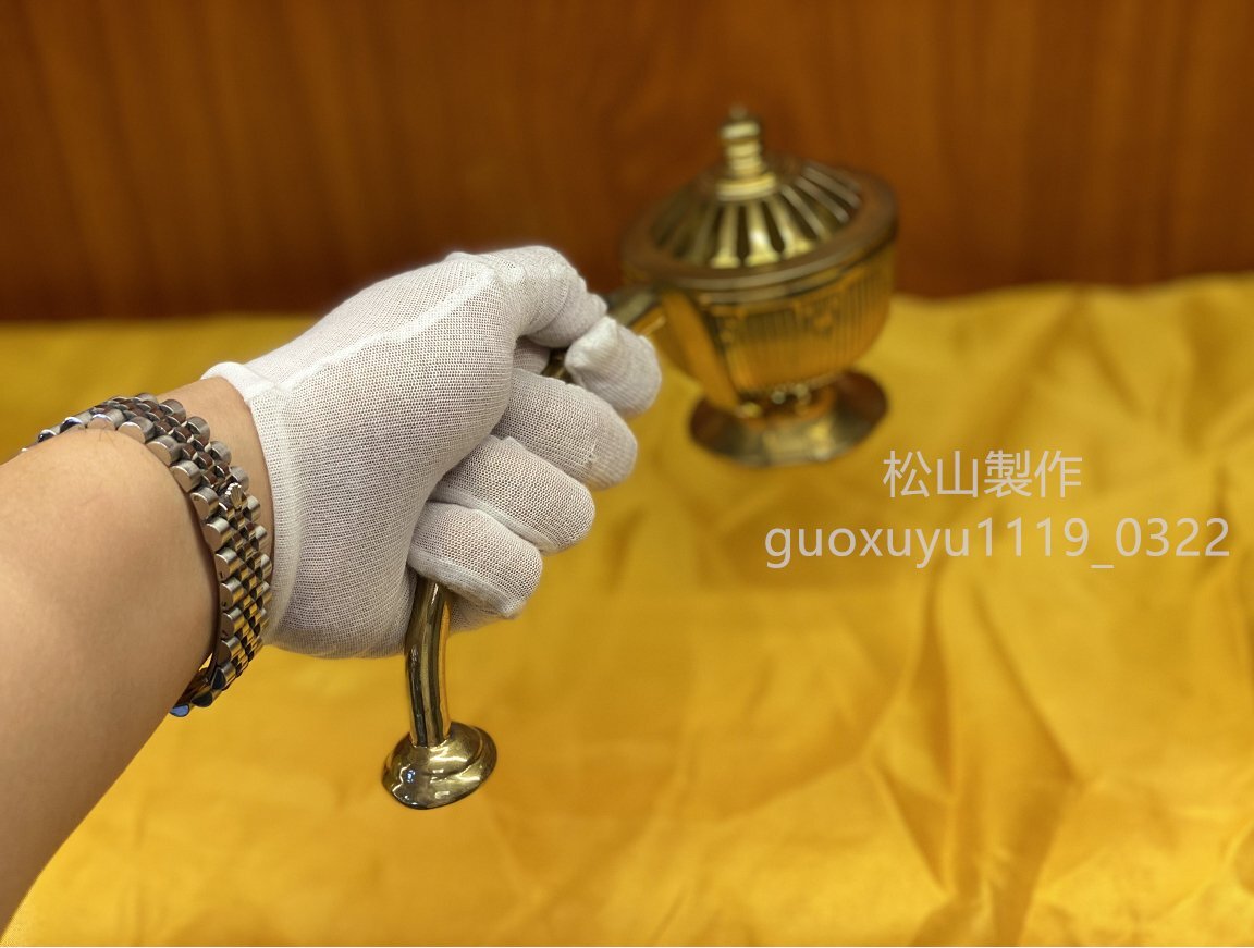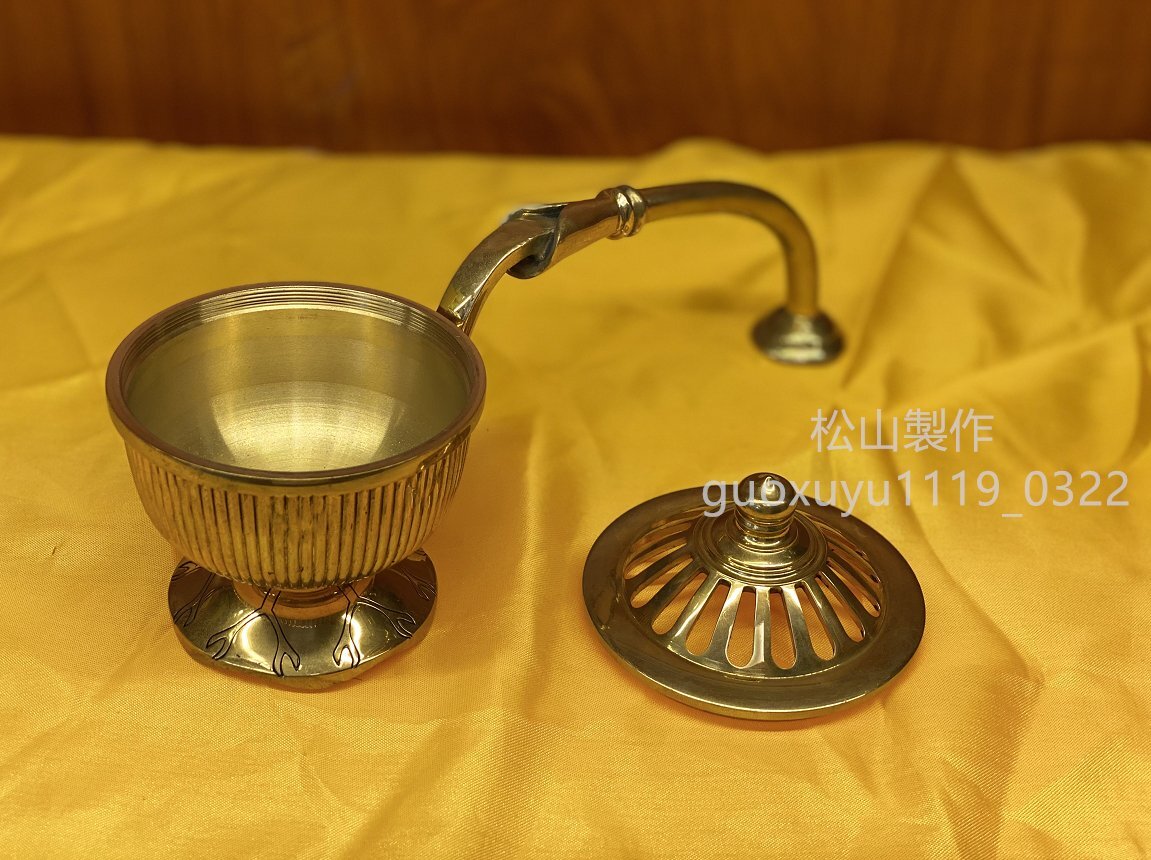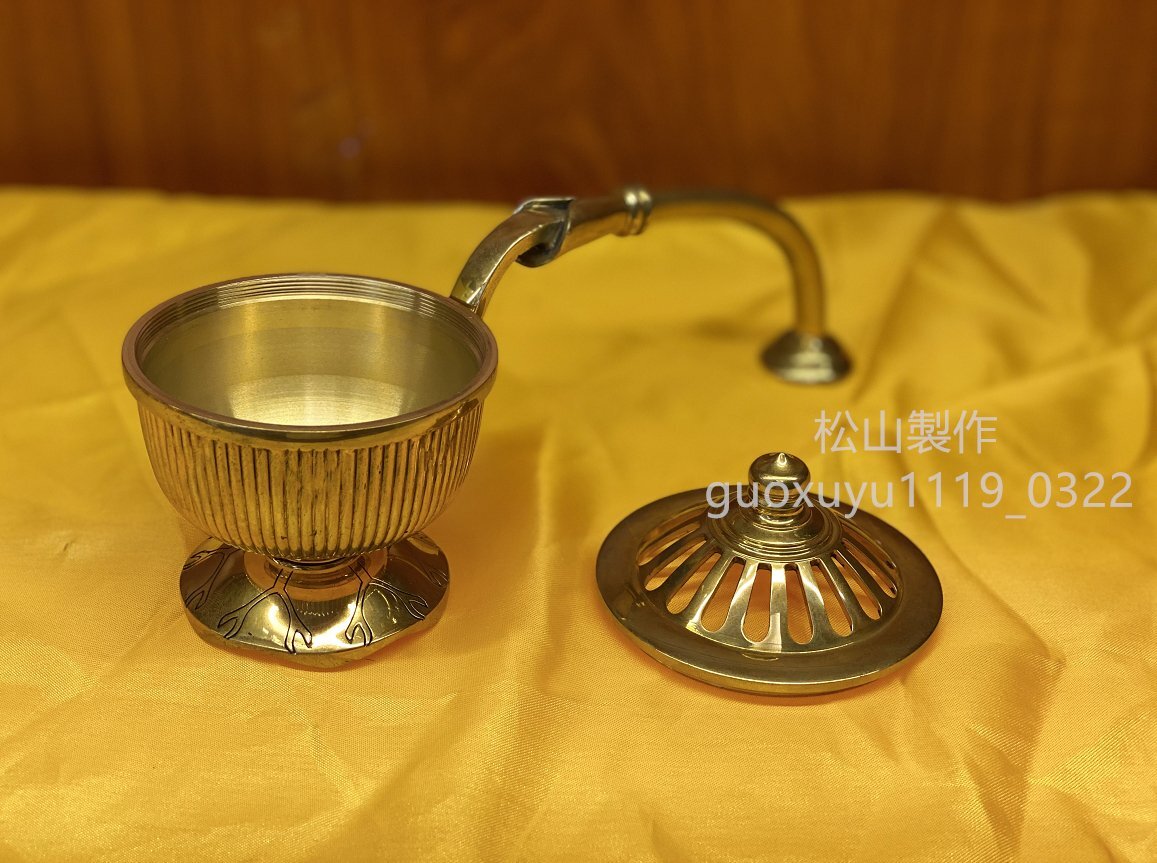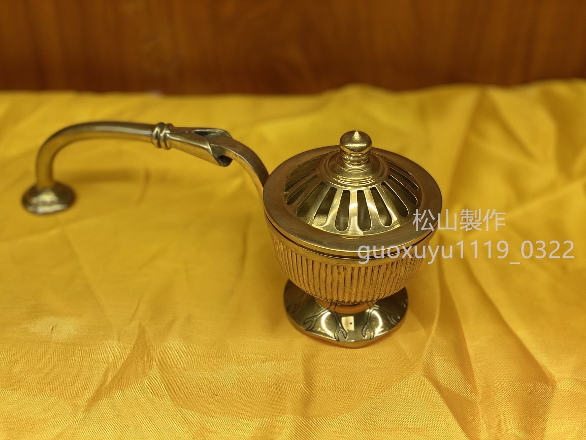 密教法具 寺院用仏具」柄香炉 真鍮製磨き仕上げ 大々型