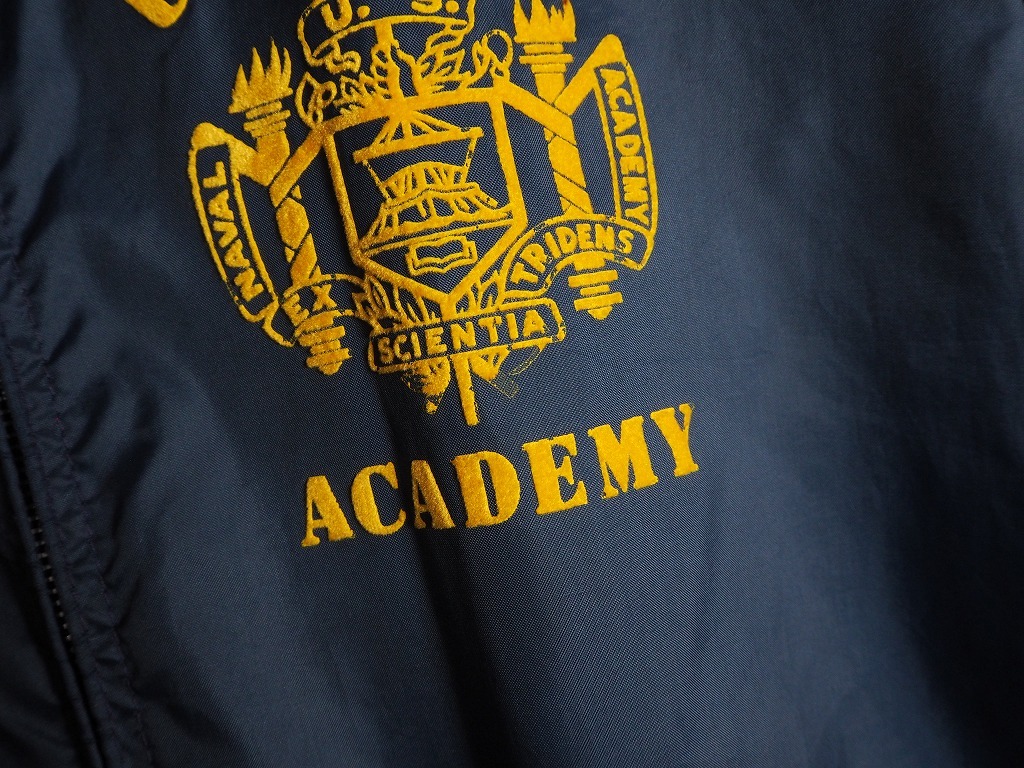 海軍士官学校の「NAVAL ACADEMY」のカレッジロゴが胸にデザインされた貴重な一着になります。