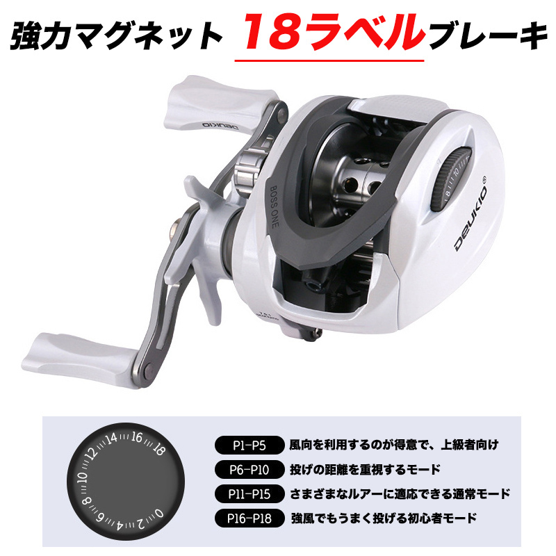 【超軽量&高性能】リール本体重量僅か207g、丈夫な品質で超軽量で長時間に使っても腕に負担をかけません。8kgまでのドラグシステムを搭載します。18ラベルマグネットブレキーとラインアラーム機能標準装備します。