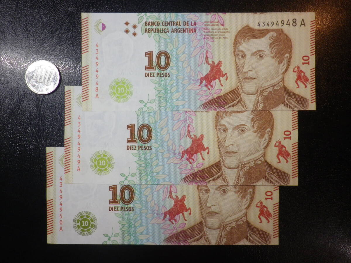 アルゼンチン 2014年 10Pesos 未使用(3枚組)