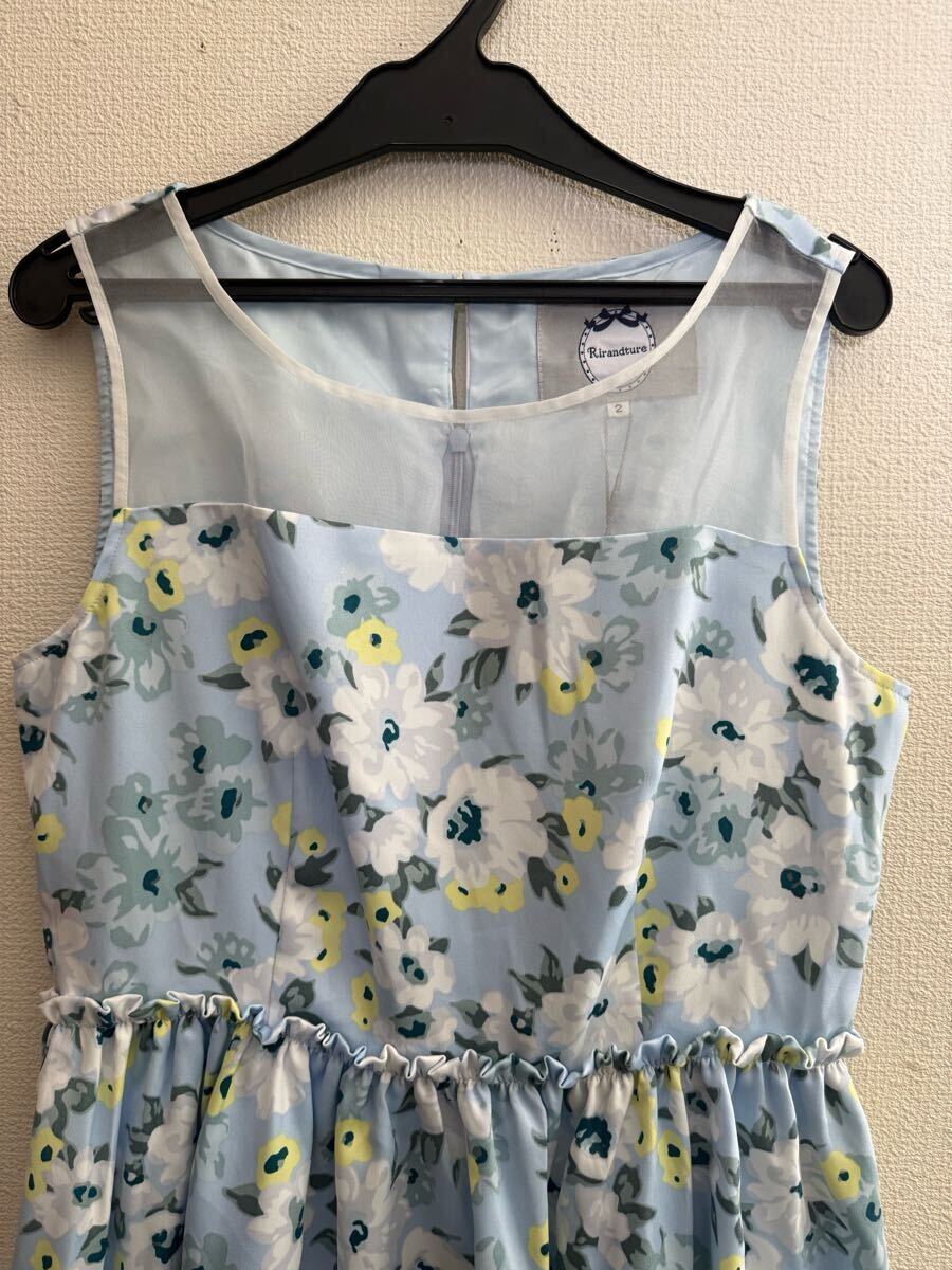 お色は淡い水色で写真と相違はないです。フロントの肩部分だけオーガンジー素材になっており透け感があります。