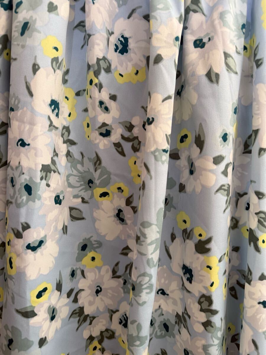 インナーやカーディガンにホワイトやブラックはもちろん、花柄と同色のイエロー、ブルー、グレーなど意外に色々合わせやすくなっています。