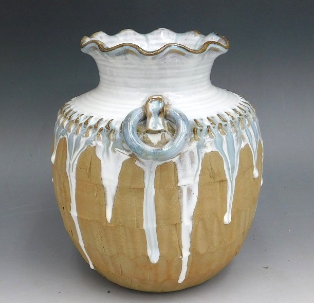 品名 【和雑貨・和骨董】花瓶 陶器製 甕 陶器製 古民家 蔵出し品 ガーデン 装飾品 玄関 インテリア用品 瀬戸焼? 丹波焼? 現状品 |