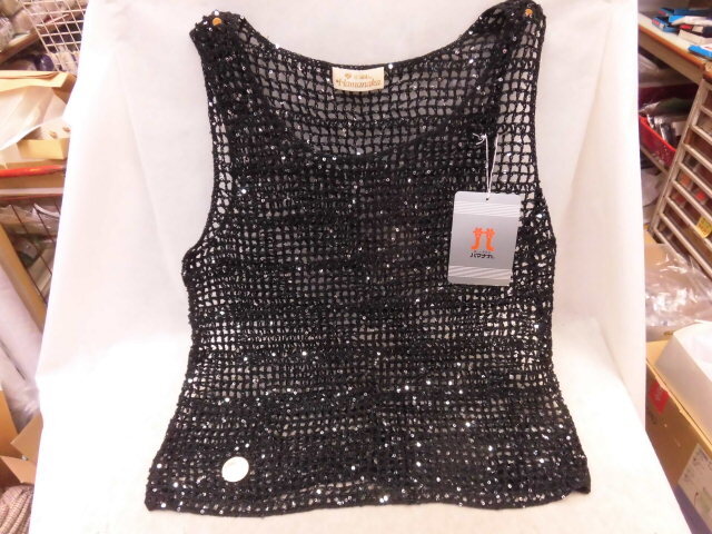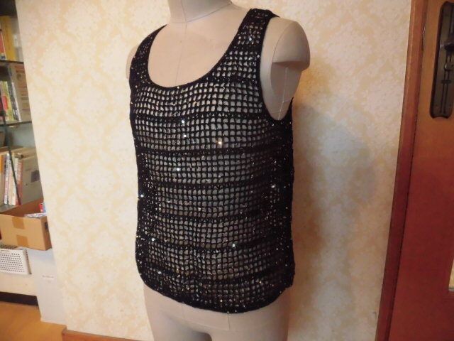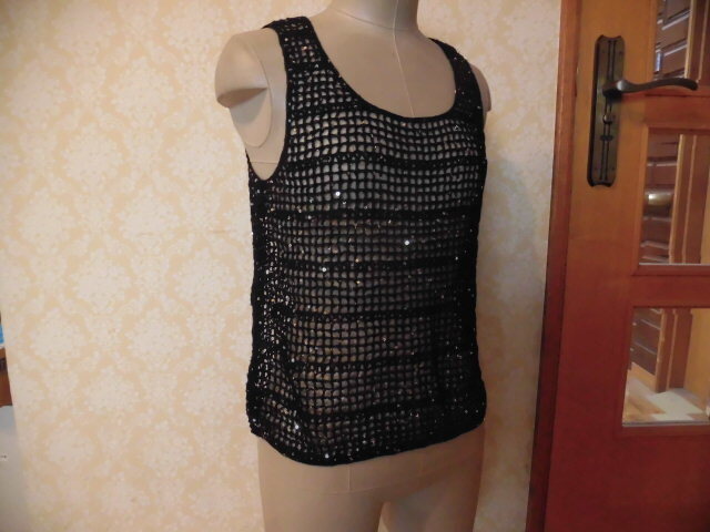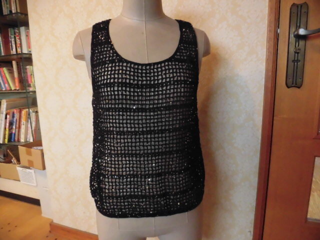 ☆手編みベスト20BB105☆黒色の方眼ベスト☆スパングラス