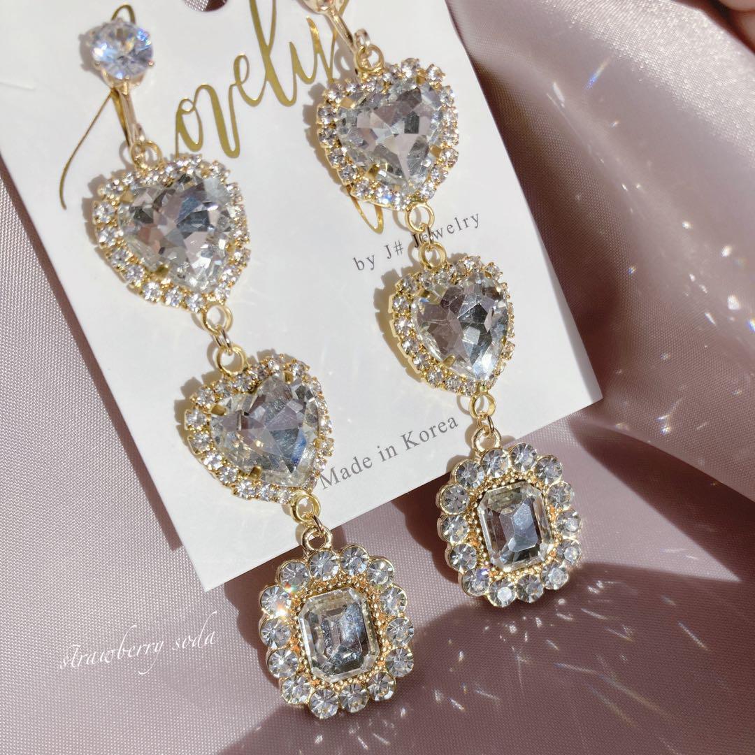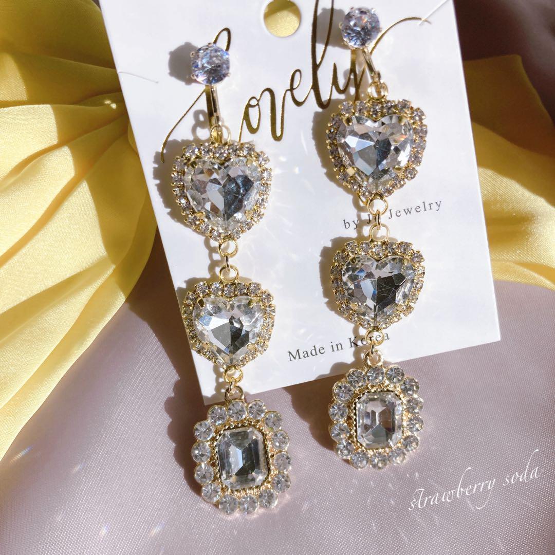 ハート ラウンド ビジュー ラインストーン イヤリング サブカル 地雷 量産型 コスプレ コンカフェ ロリータ ゆめかわいい 韓国ファッション