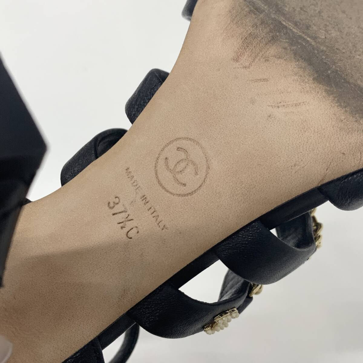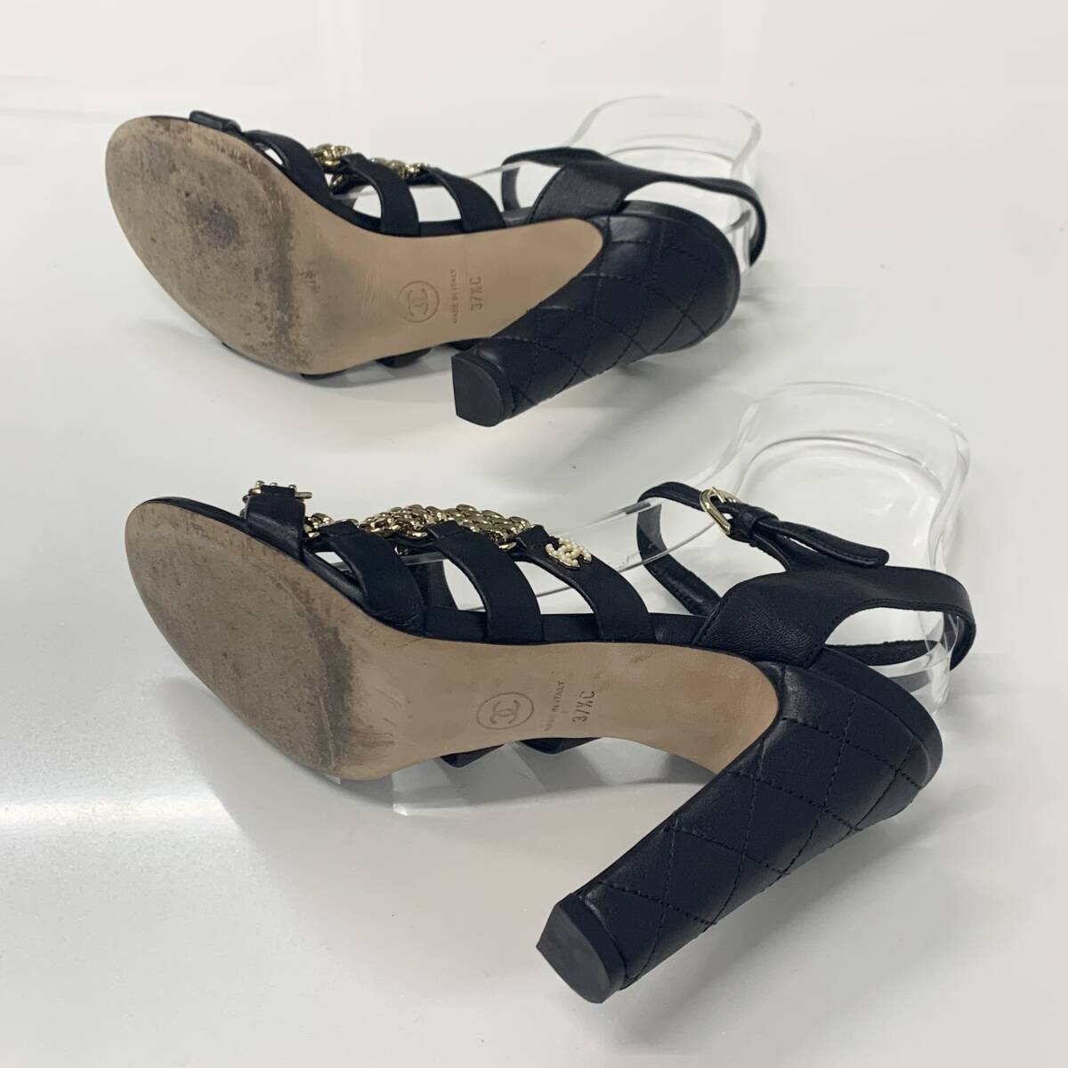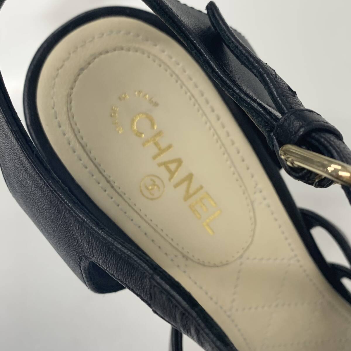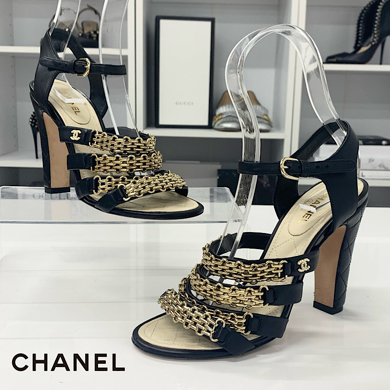 シャネル ココマーク レザー チェーン ストラップ サンダル ブラック