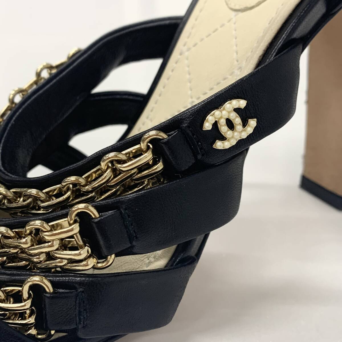 M11530 シャネル ココマーク レザー チェーン ストラップ サンダル ブラック