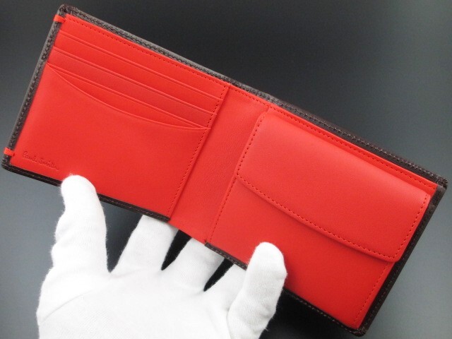 ☆贈り物に☆新品☆箱付 ポールスミス 人気カラーコンビ 折り財布 チョコ☆