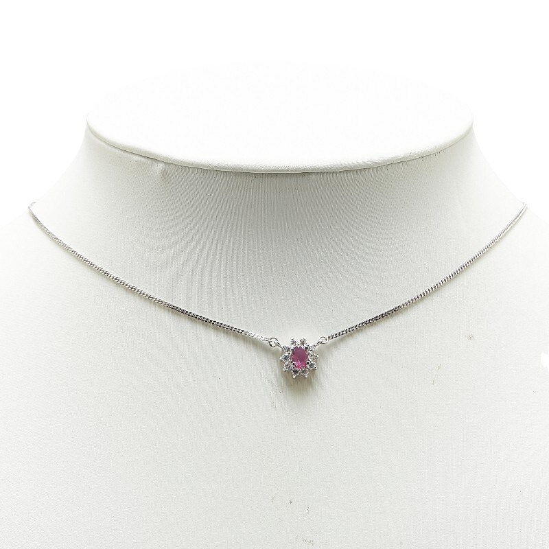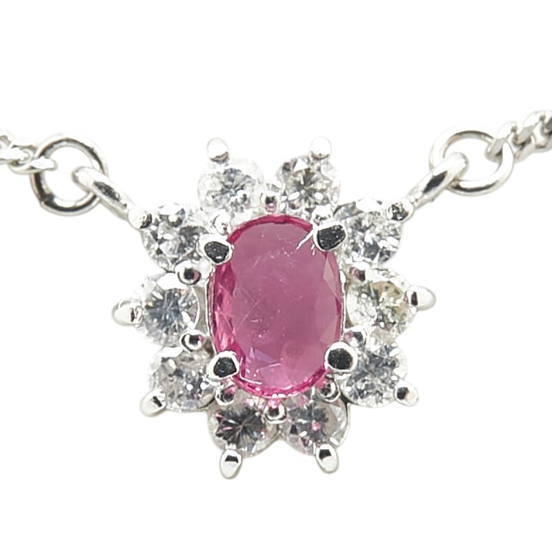 Pt850 プラチナ ルビー0.34ct ダイヤ0.32ct プチ ネックレス レディース 中古