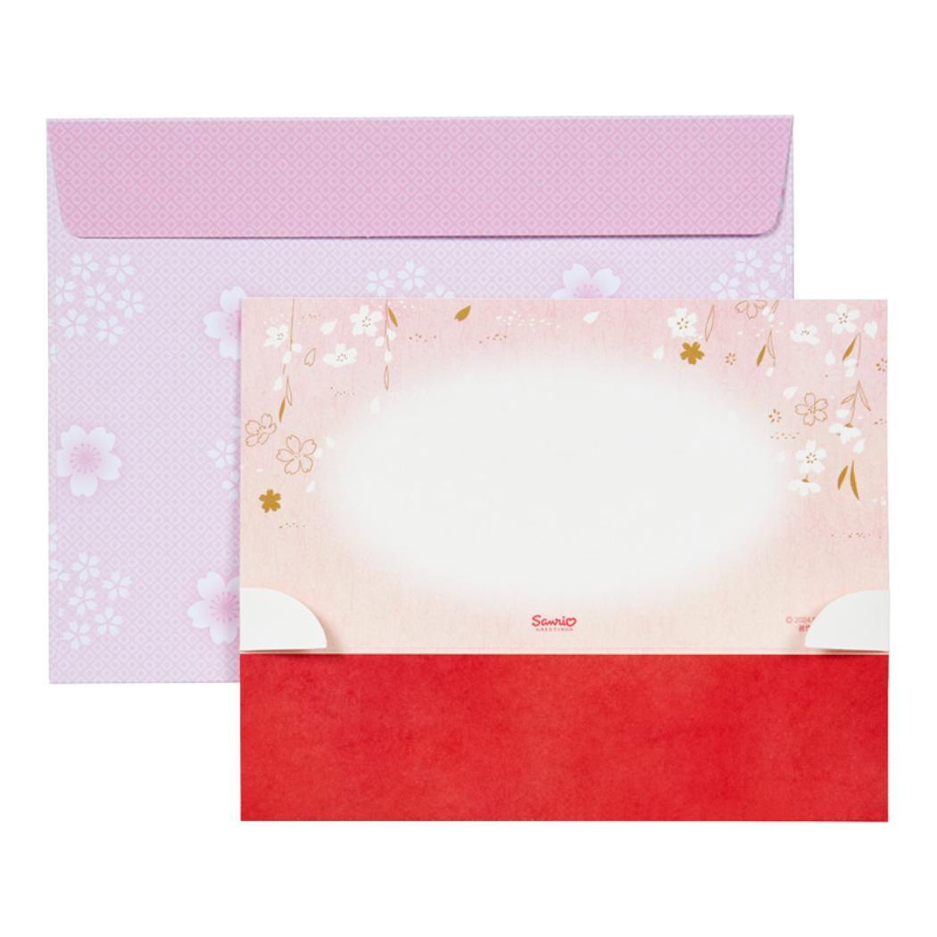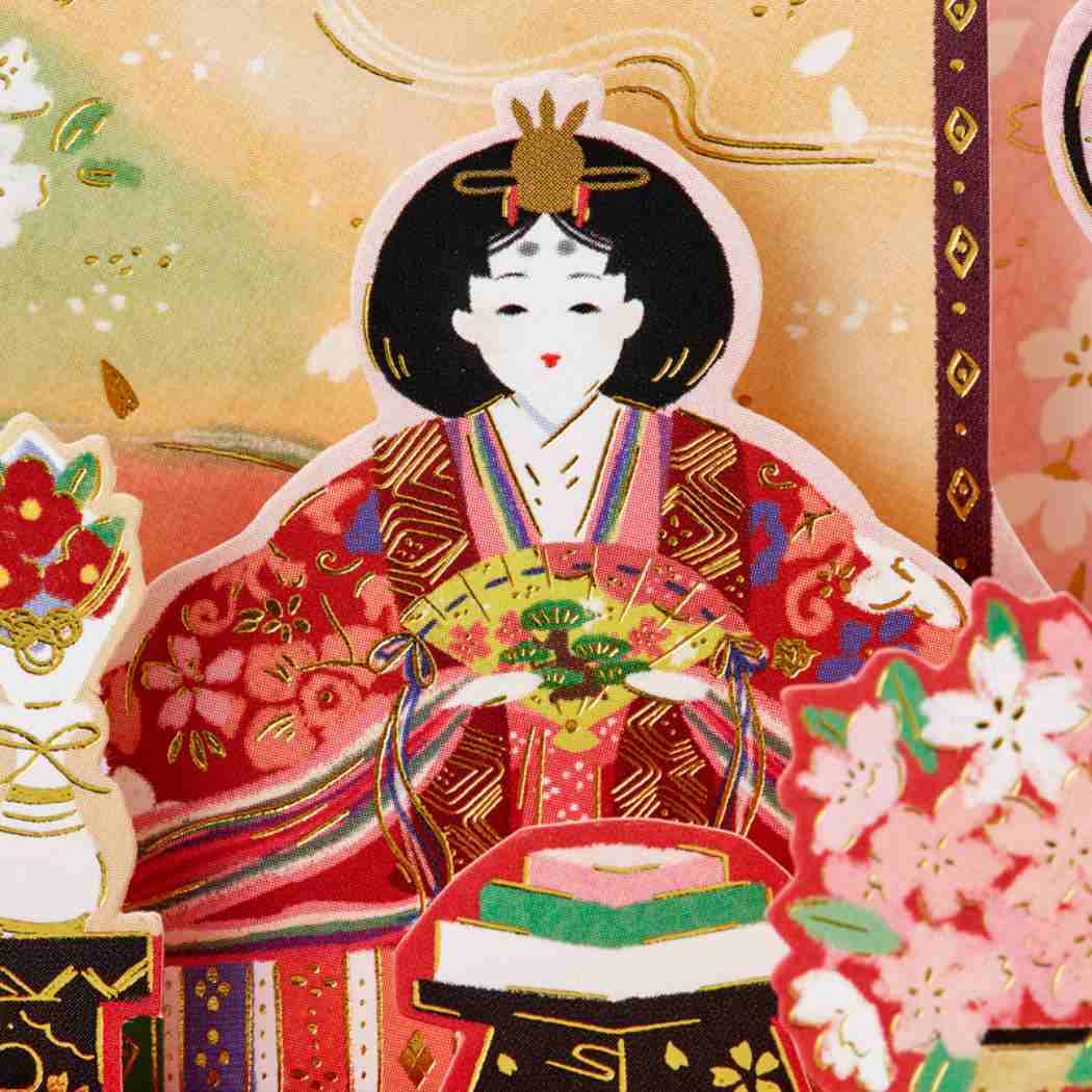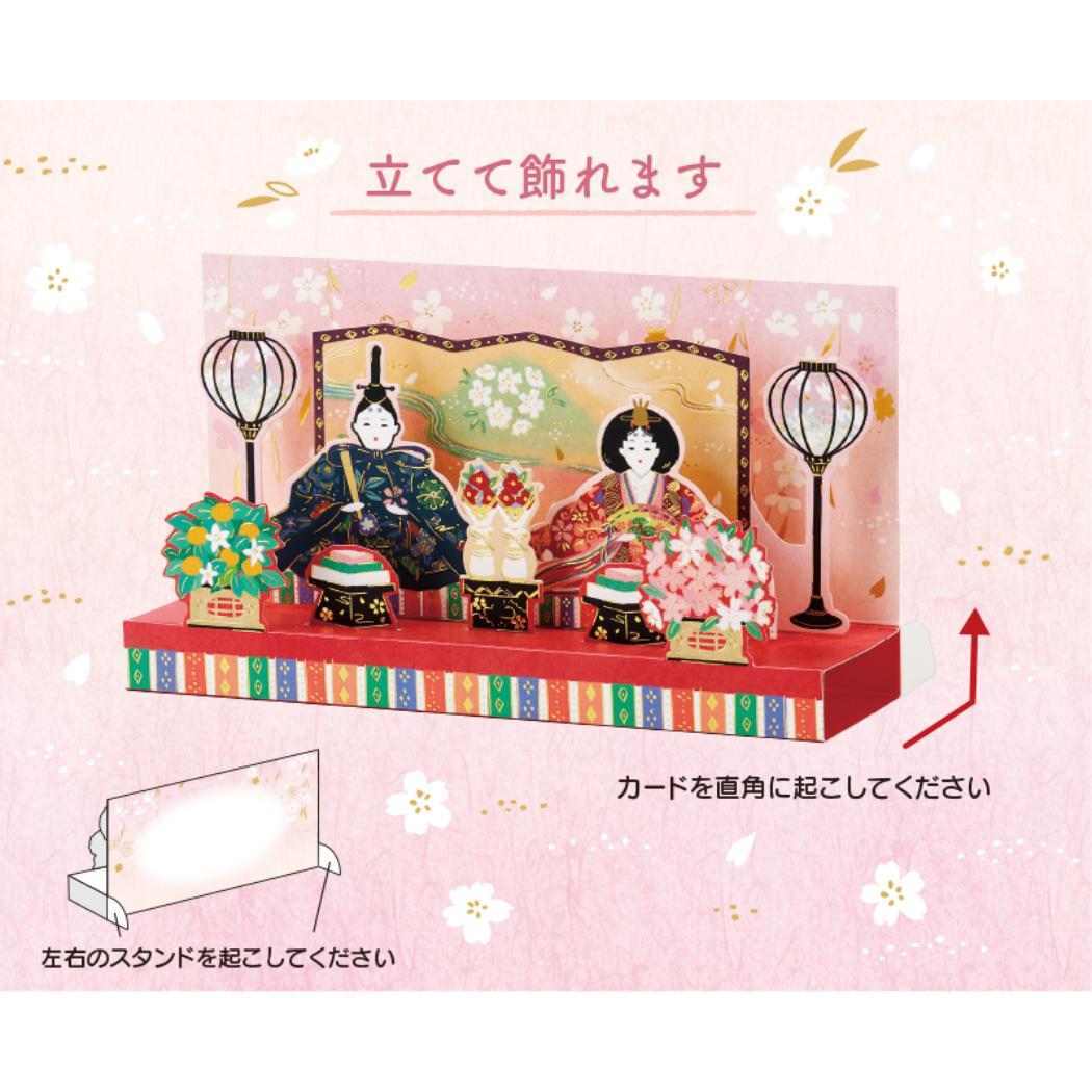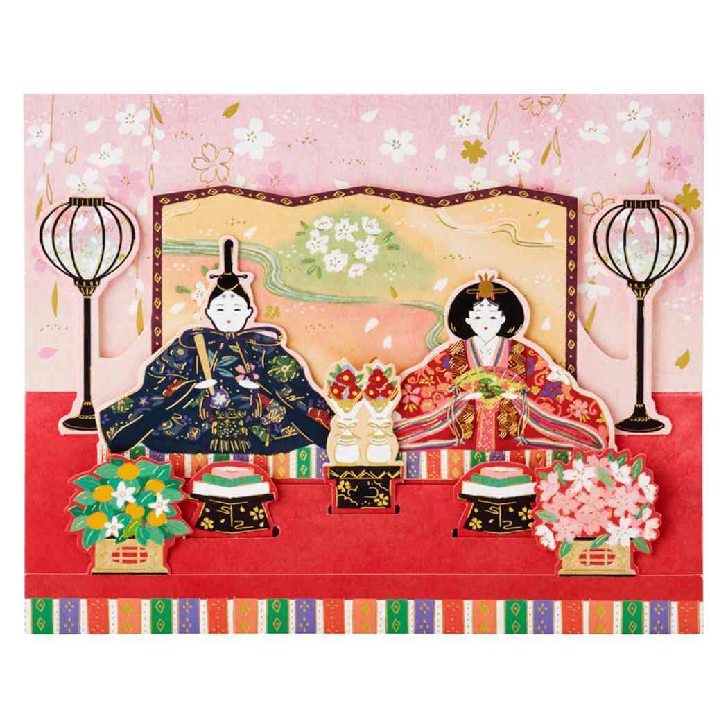 ひなまつり グリーティングカード 立体カード 桜柄の背景に親王飾り サンリオ プレゼント 封筒付き メッセージカード グッズ