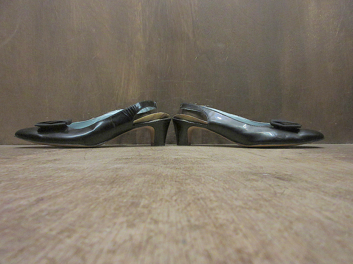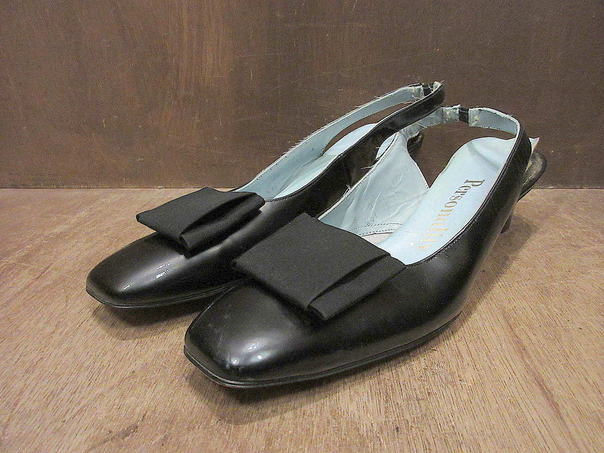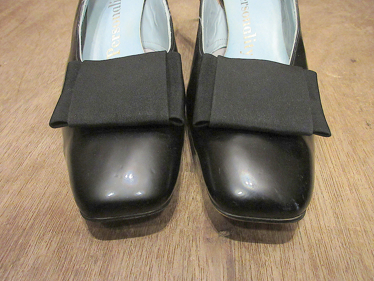 1970's DEADSTOCK Personalityリボン付きパンプス黒size 8 2A/4A