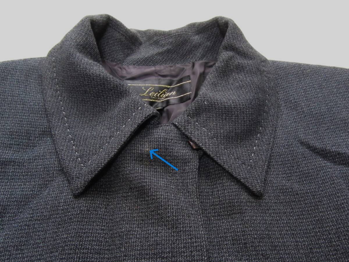 ブランド レリアン サイズ 9 実寸(平置きの大体のサイズですので参考までに) 着丈約90センチ 胸囲脇の下部分約58センチ 肩幅約50センチ(8~10ミリほどの肩パット付き) 裄丈約80センチ 裾幅約64センチ お色 ダークグレー・ブラックの混じり 素材 表 毛82 レーヨン13 ナイロン5 裏 キュプラ100 商品説明 商品状態・・・ [C] 《S》新品・未使用 《SA》新品に近い状態 《A》使用頻度が少なく全体的にキレイ 《AB》多少使用感はあるがキレイ 《B》一般的な中古品 《BC》多少のキズや汚れがある 《C》キズや汚れがある 《CD》目立つキズや汚れがある (個人差がありますので参考程度にお考え下さい。) 透け感・・・ あり 若干 〇なし 裏地・・・ 〇あり なし 伸縮性・・・ あり 若干 〇なし 生地の厚さ・・・ 薄手 〇普通 厚手 難あり・・・左の袖先と襟もとに汚れあります。画像でご確認ください。細かなことが気になる方は購入をお控えください。 厚すぎず薄すぎずちょうどよいコートです。 ※洋服によって匂いや素材によりシワがある商品があります。ご了承ください。 ※透け感・伸縮性・生地の厚さには個々の感じ方がありますので参考としてお考えください。生地の厚さは季節に応じての感じ方としてお考えください。 | ||