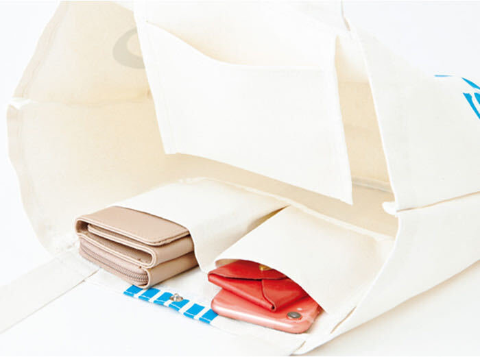 内側両サイドにポケットが付いていて便利です。