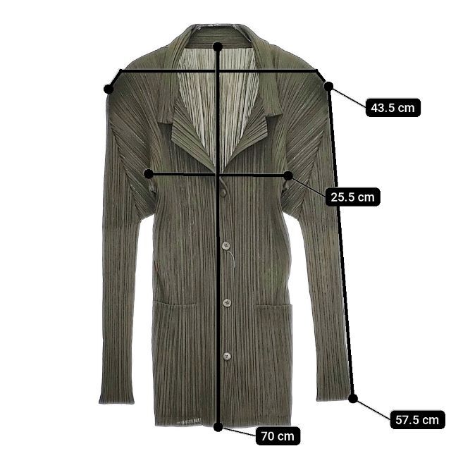 | 実寸サイズ | 肩幅:約43.5cm 着丈:約70cm 身幅:約25.5cm 袖丈:約57.5cm 備考 すべておおよそ ※記載以外のサイズが合わないことを理由とした返品はできませんので、 記載部分以外で実寸サイズの気になる箇所があれば必ず購入前にご質問ください。 |