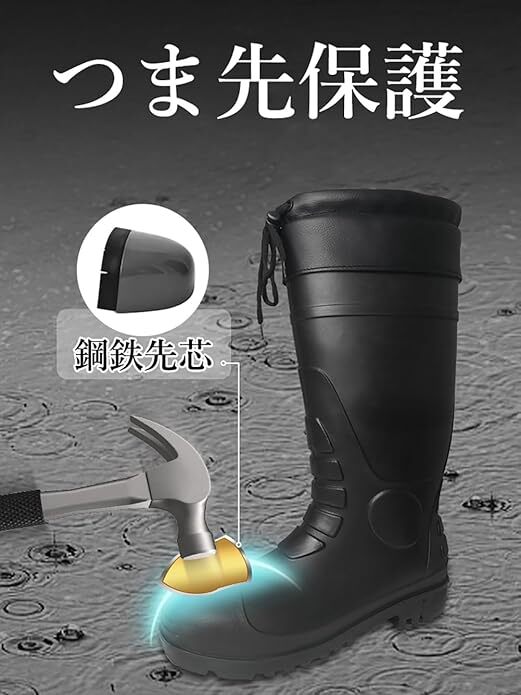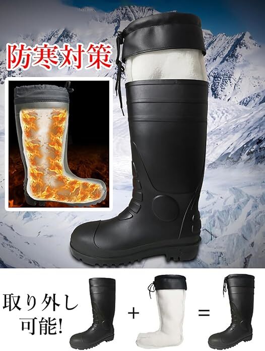安全長靴 防寒安全靴 先芯入り 耐油 寒冷地仕様 釘踏み抜き防止 防水 鉄芯 軽量 作業用 耐滑 冬用 サイズ:28cm