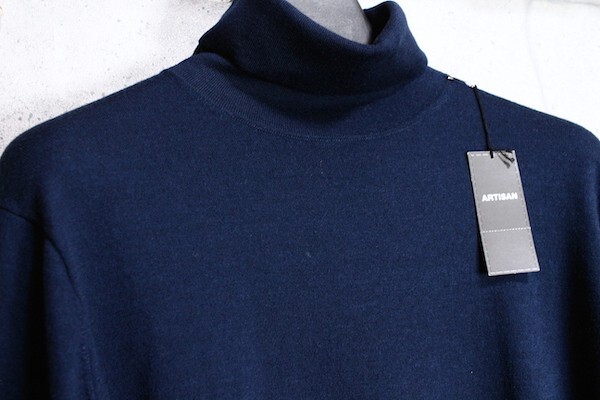 コムサ最高級ブランド、アルチザン(ARTISAN)の日本製 シルク混 エクストラファインメリノ ソリッド タートルネック セーター。
