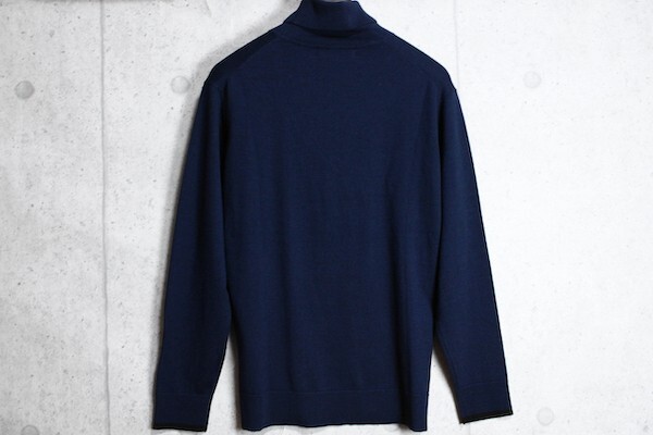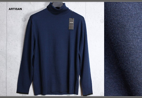 新品 アルチザン メン 秋冬 日本製 シルク混 エクストラファインメリノ ソリッド タートルネック セーター M/紺/2.8万/ARTISAN MENサンプル