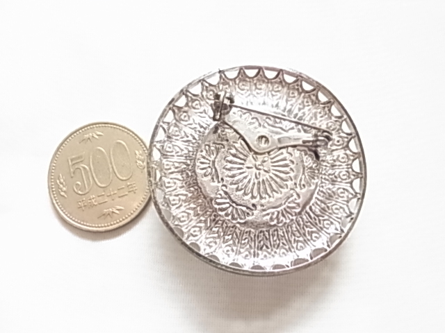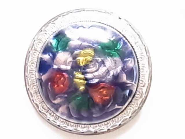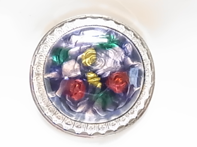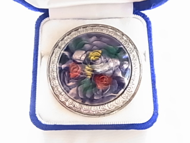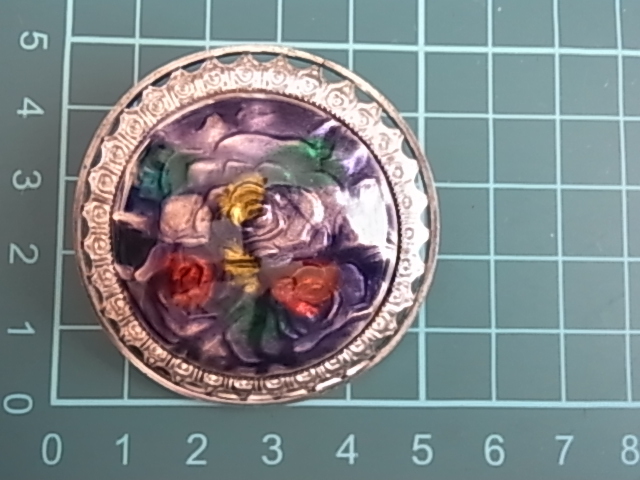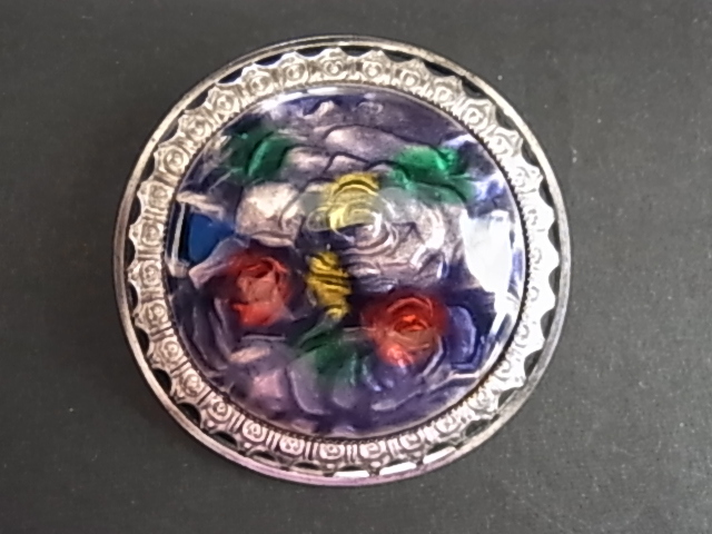 ■ビンテージ/ヴィンテージ 円形モチーフ 七宝焼き 薔薇 紫トーン お花 フラワー ROSE ローズ 昭和レトロの素敵なブローチ