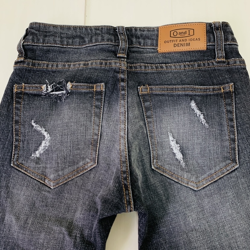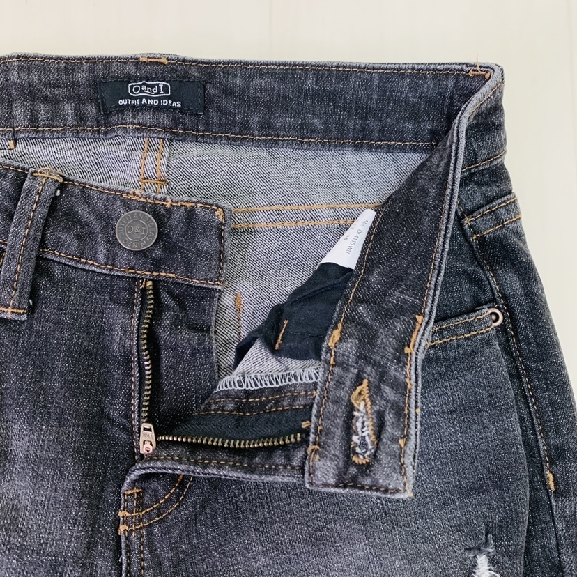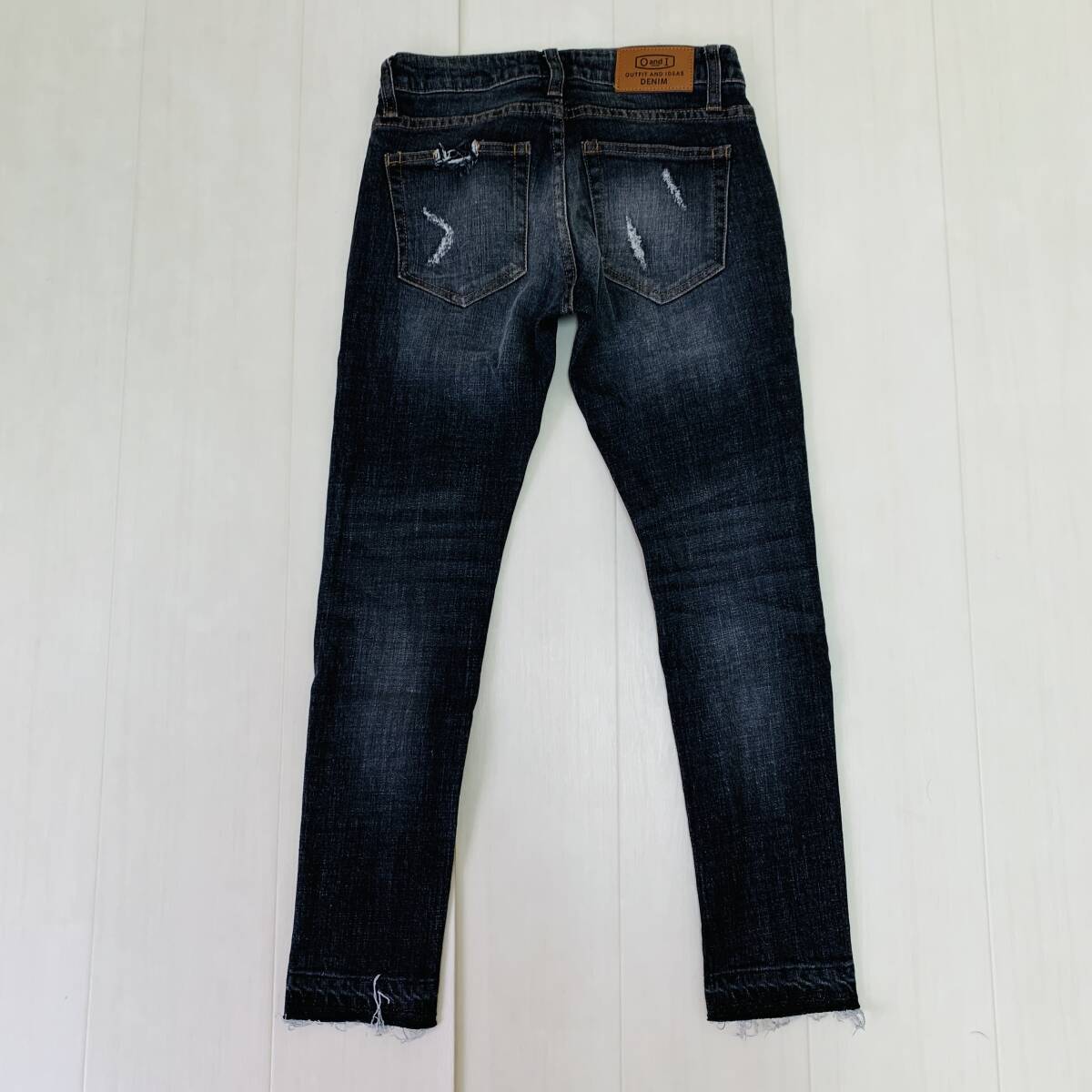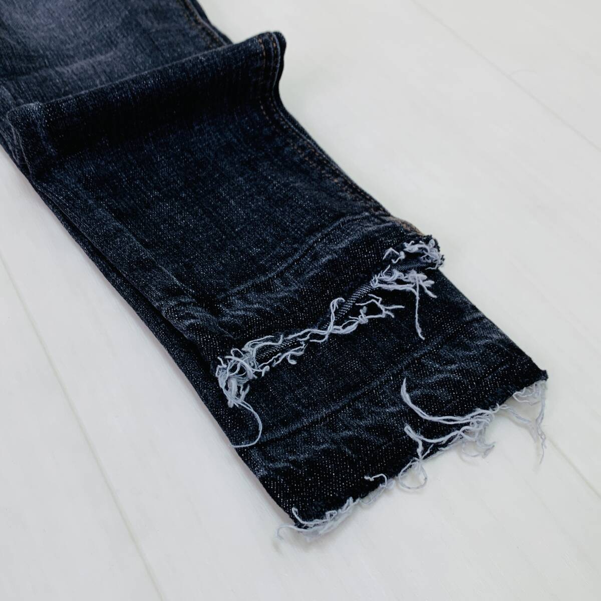 YH2560 O and I レディース デニムパンツ Gパン ジーンズ ストレッチ素材 ブラック 黒 34サイズ ダメージ加工 切りっぱなし 万能 USED 古着