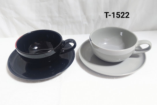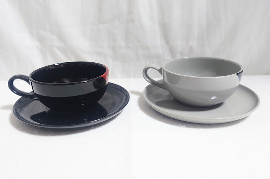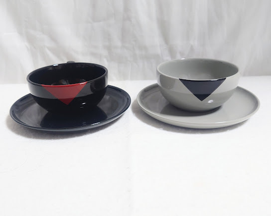 《中古》JUNKO KOSHINO ティーカップ&ソーサー 2客セット グレー&ブラック
