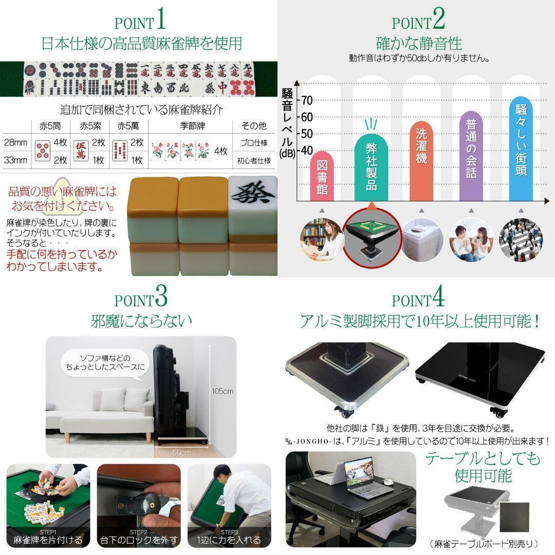 雀荘の感覚を自宅で楽しみながら、電気代やプレイ料金を気にしなくても良いコスパ抜群の全自動麻雀卓です。
