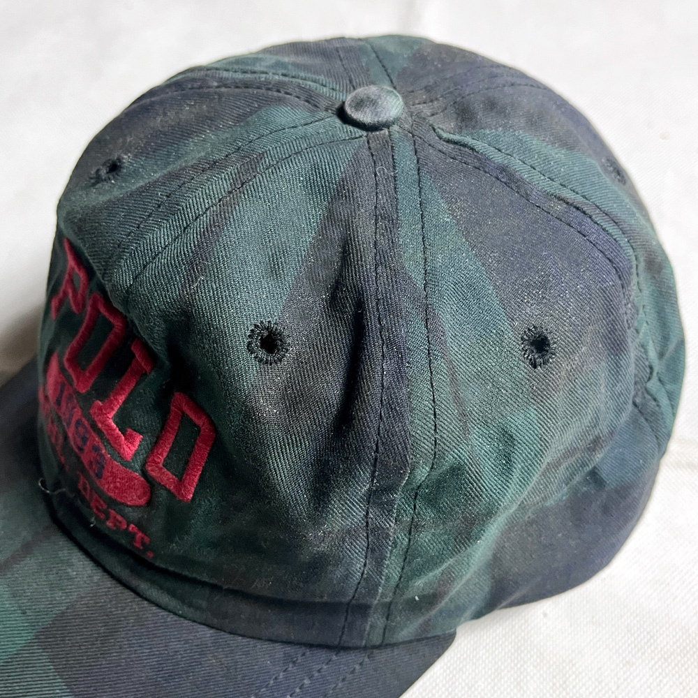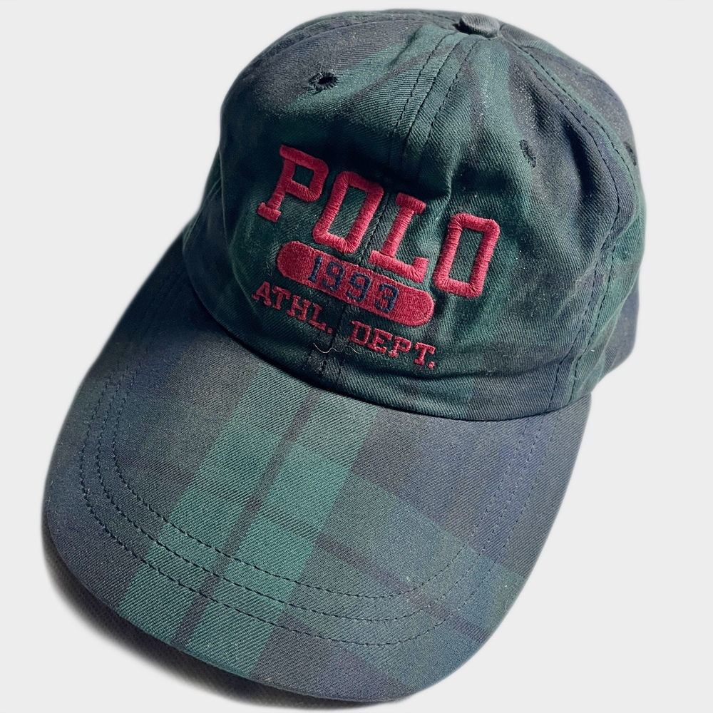 貴重なUSA製の当時物のラルフのキャップ類はコレクターも多く、これからより値段が高騰するであろう人気アイテム!その中でもロングビルキャップはかなり希少で、非常に高い人気を誇るブラックウォッチのプレイドチェック柄ですので、サイズが合う方はマストバイ!!