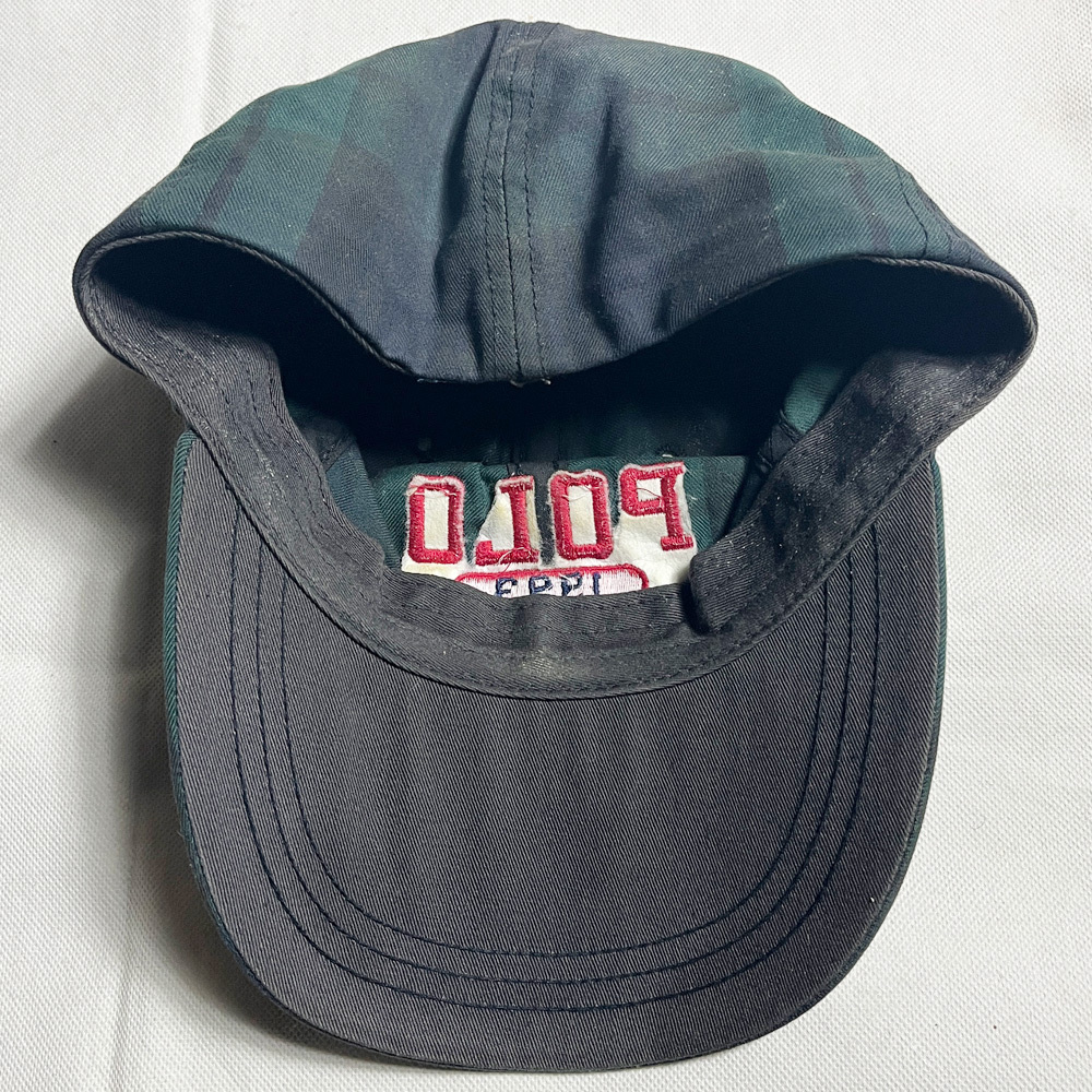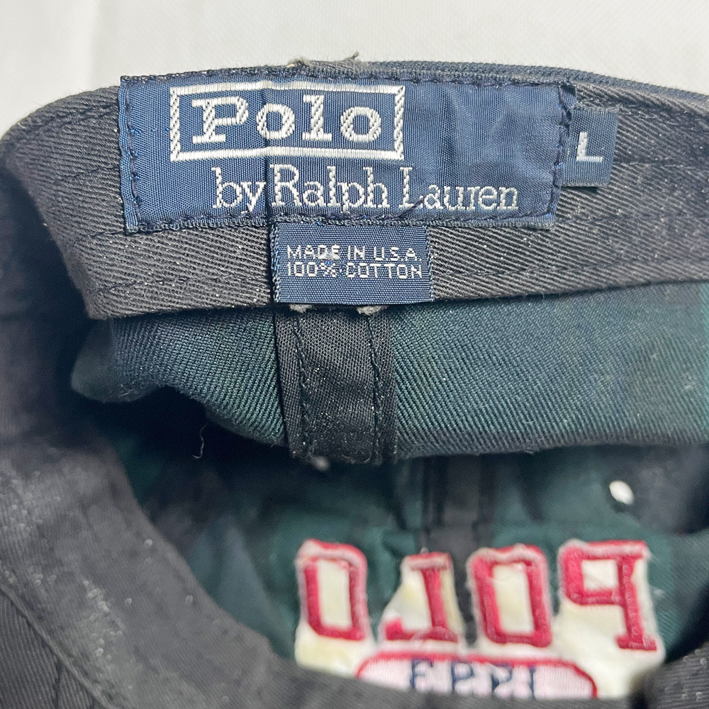 幻級 USA製! 90's POLO RALPH LAUREN PLAID CHECK LONG BILL CAP ポロラルフローレン チェック ロングビル キャップ 着 L ブラックウォッチ