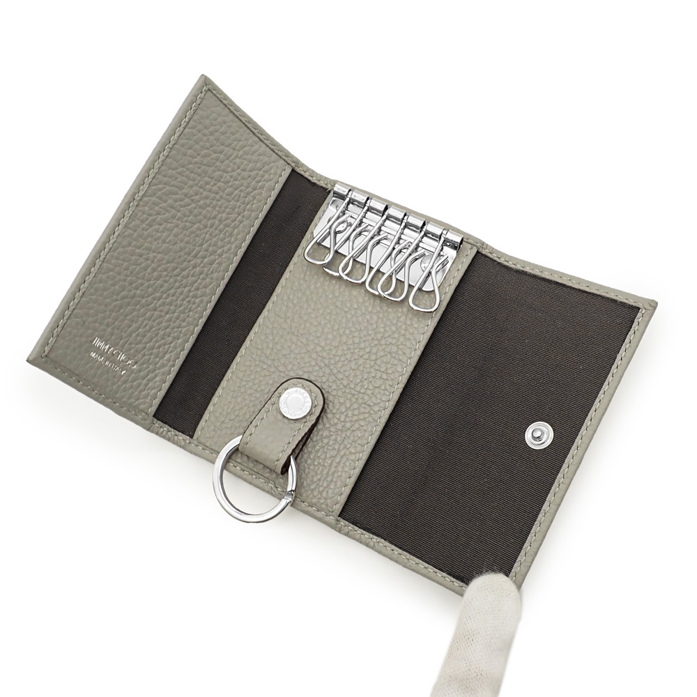 | グレインレザーにスタースタッズをあしらったキーケース。 スナップボタンで開閉し、内側には6つのキーフック、キーリングが備え付けられています。デイリー使いにぴったりです。 |