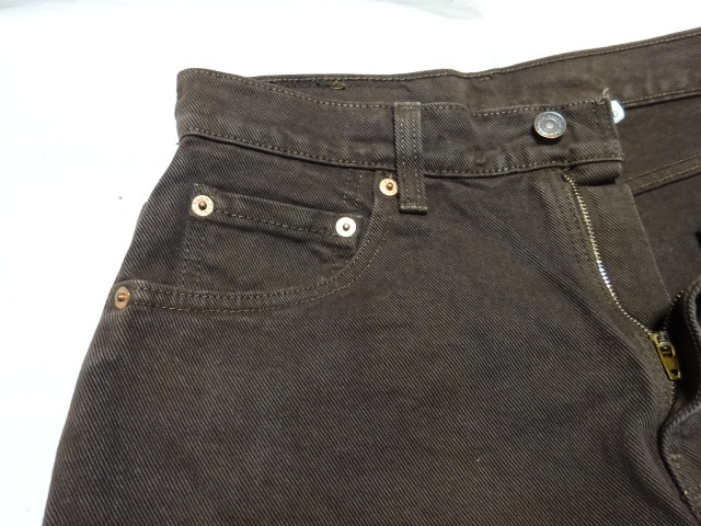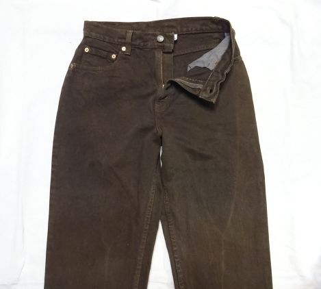 Levi's 551 RELAXED FIT TAPERED LEG 90年代551デニムパンツ。 ブラウンに後染めされています。 ジップはLevi's MADE IN USA 当時のレディースモデルになりますが、サイズが合えば男女関係なく着用出来るデザインです。 実寸を参考にご検討ください。 |
