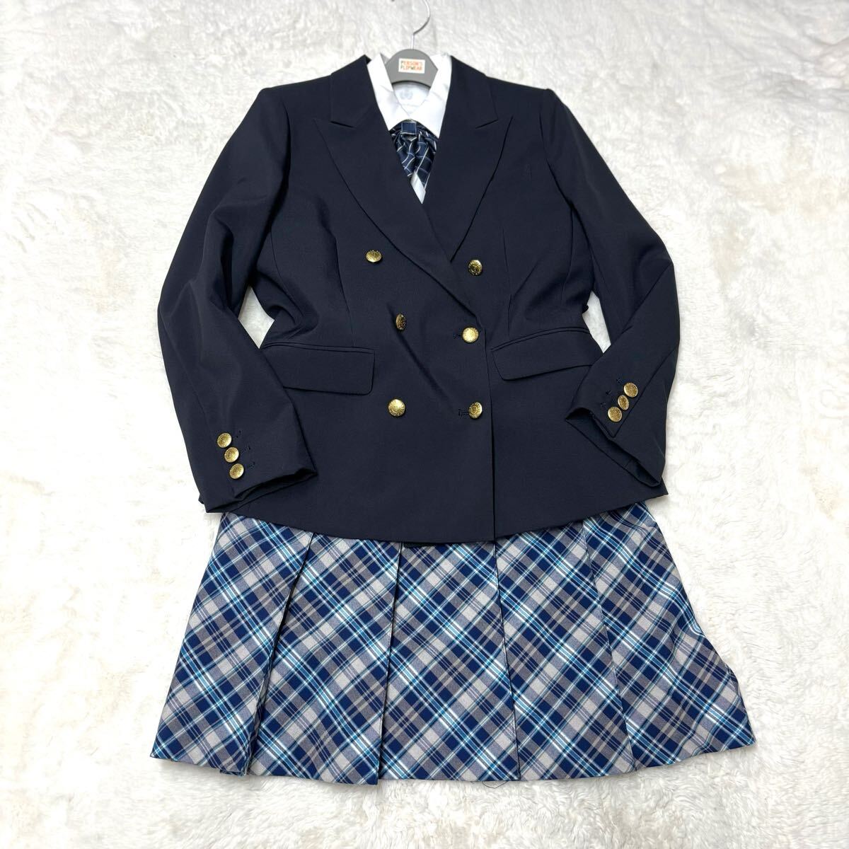 スカートはブルー系のチェック柄でクールで可愛らしいデザインです。