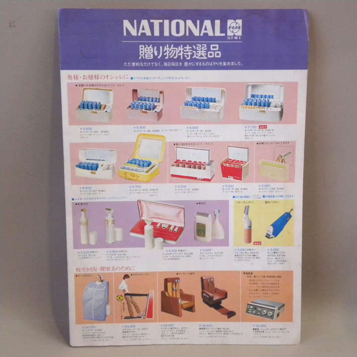 1970年代当時物、松下電器「ナショナル 贈り物特選品 二つ折りカタログ 1972年」です。サイズは縦約30cm、横約21cmです。