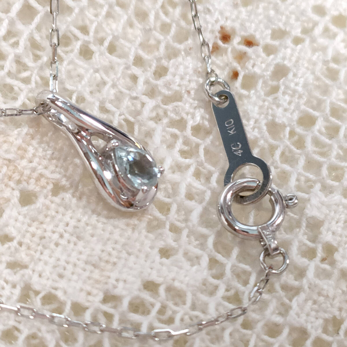 K10 【4℃】 しずく ネックレス アクアマリン 誕生石 ティアドロップ WG ホワイトゴールド 4°C ヨンドシー 10金 10K