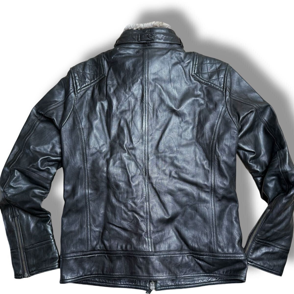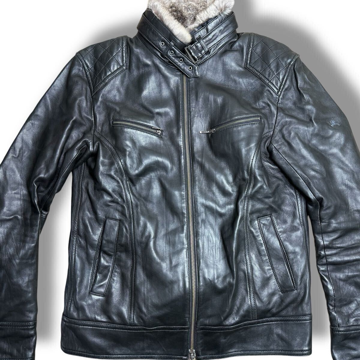 大人気!BURBERRY BKACK LABEL社製レザーライダースジャケットが入荷致しました。状態もよく高価なアイテムだけあり上質な羊革を使用しており季節によって脱着可のファーが存在感バツグンのデザインでスタイリッシュに仕上がったアイテムです。綺麗め、バイクシーンではもちろんロックでもアメカジスタイルでも大活躍するオススメのアイテムです。ぜひこの機会に!!
