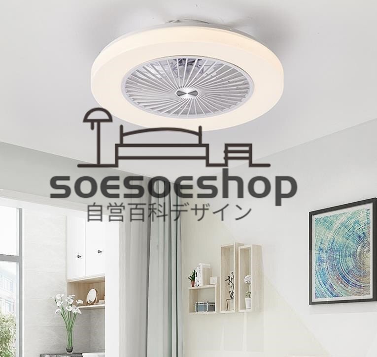 室内芸術☆ホワイト LEDシーリングファンライト リビング照明 ダイニング照明 寝室照明 無階段調光調色 3段階風量 リモコン付