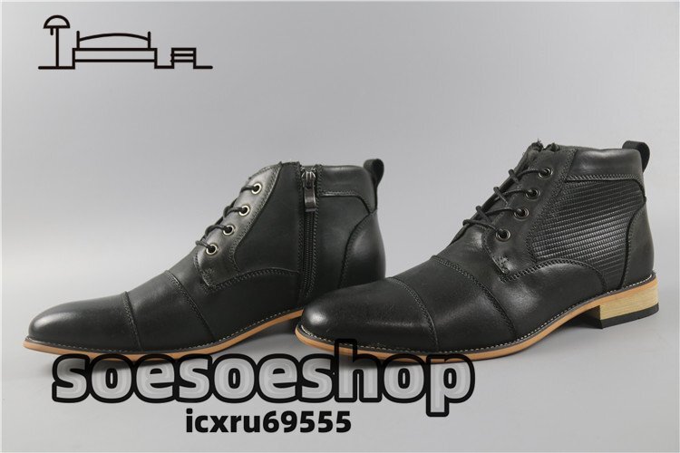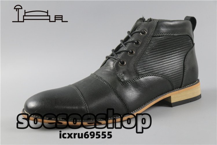 牛革 本革レザーブーツ メンズ 革靴 職人手作り 紳士靴 ウェスタンブーツ エンジニアブーツ ビジネス ブラック 26-28.5cmから選択可能