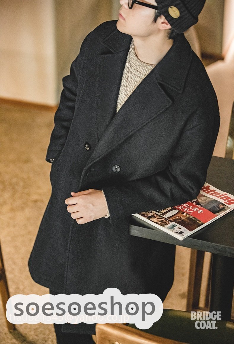 ヴィンテージ復刻デザイン BRIDGE コート ミリタリー ブリッジコート☆ヘビー ウール コート ブラック 軍服 M~XL