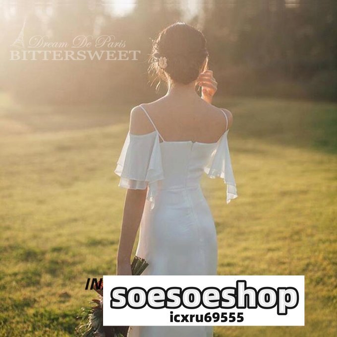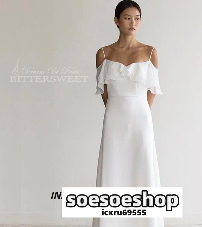ワンピース ウェディングドレス キャミソールドレス スレンダーライン ロング 前撮り 後撮り 披露宴 結婚式 演奏会 発表会 海外挙式ドレス