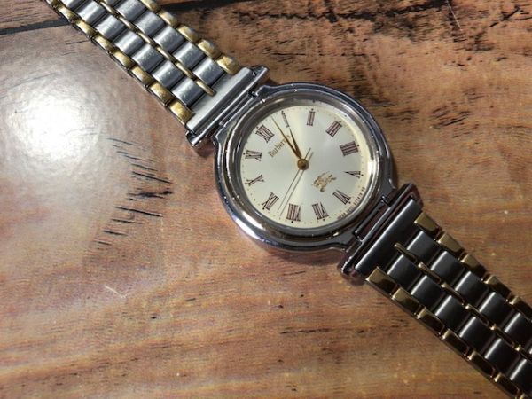 良好 希少 レア Burberrys バーバリー シルバー×ゴールド シャンパン系文字盤 純正SSブレス クオーツ メンズサイズ 腕時計