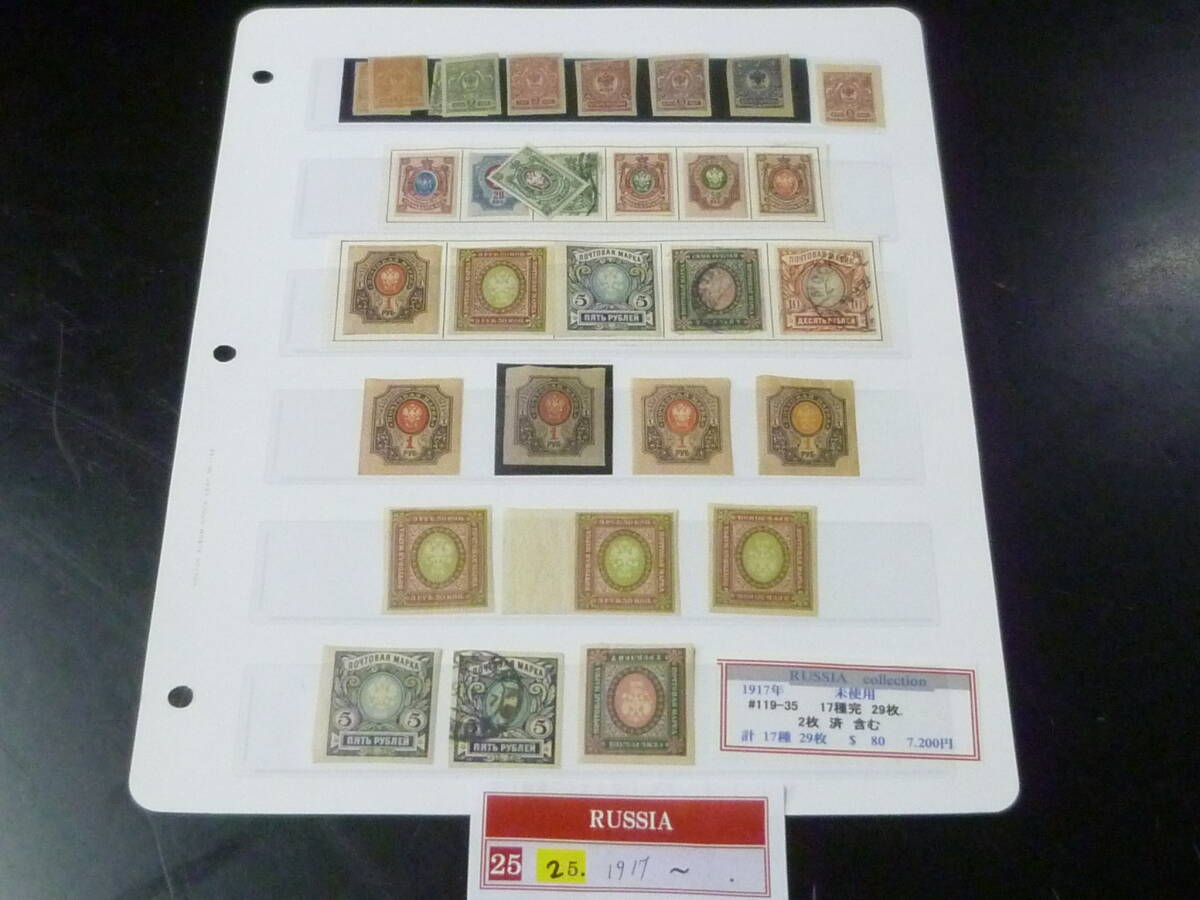 25F A №25 ロシア切手 1917年 SC#119-35 17種完 29枚 未使用OH(使用済2種含)・VF 【SC評価 $80】 ※説明欄必読