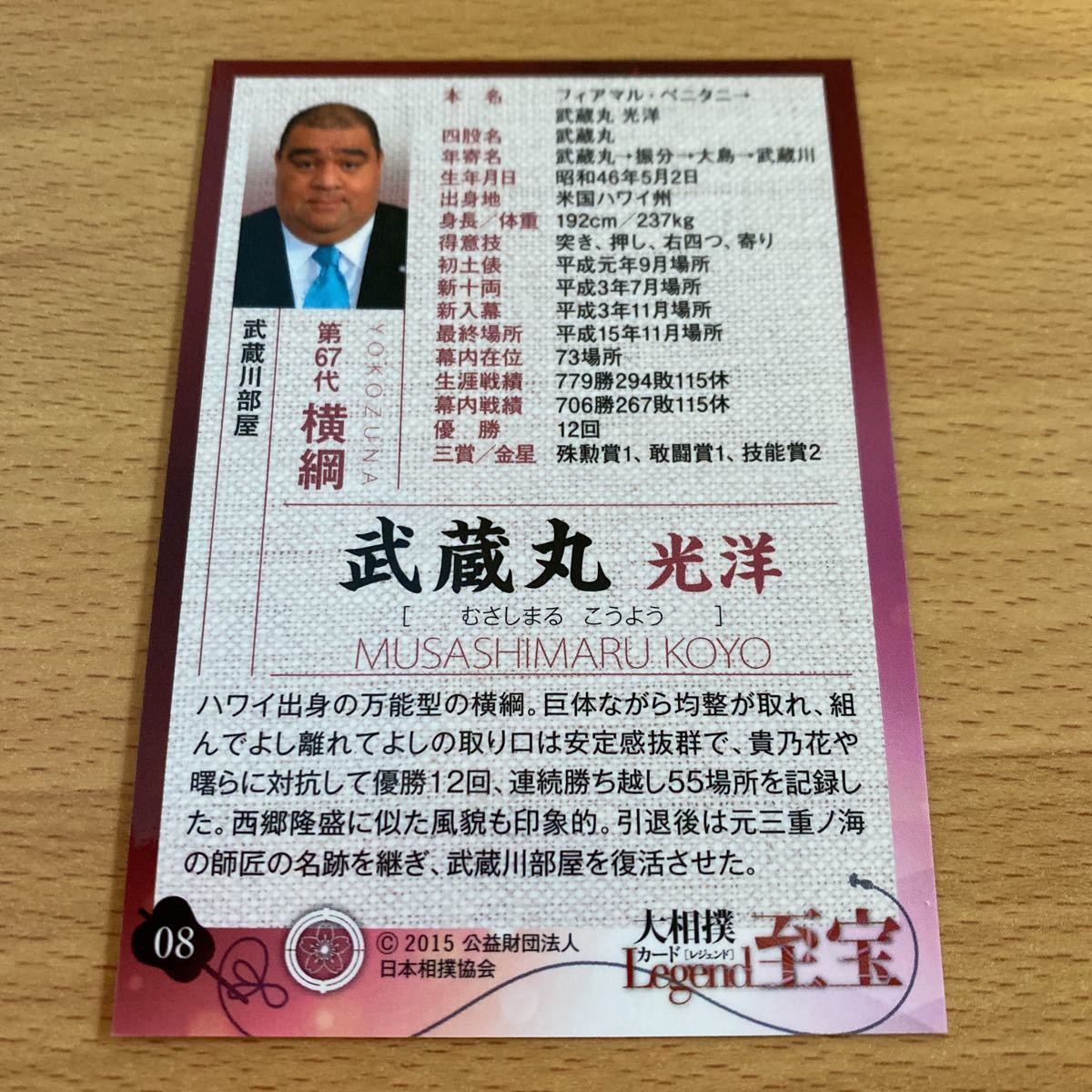 即決●BBM2015 大相撲カード [レジェンド]至宝 #08 武蔵丸 光洋 横綱 武蔵川部屋